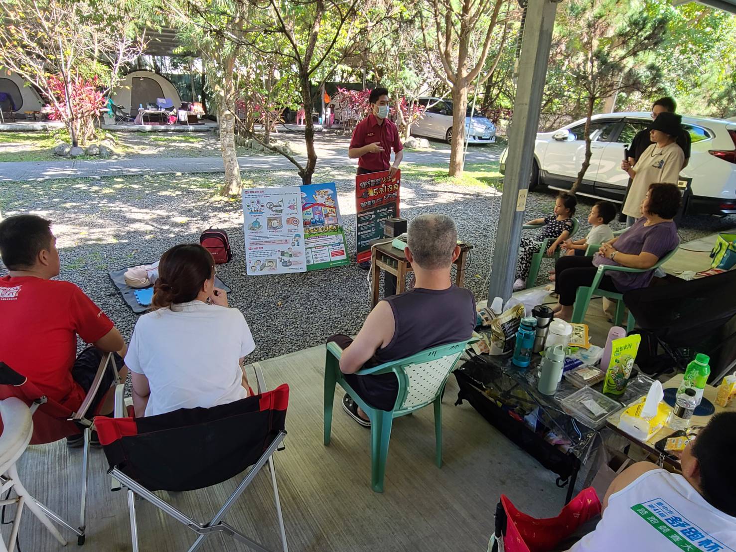 今(25)日苗栗縣政府消防局象鼻分隊前往士林村露營區,向遊客實施防災及救護宣導,主題聚焦於「用火用電安全」與「CPRAED操作」。藉由宣導與實際互動,期能強化民眾自我防護觀念與應變能力。
