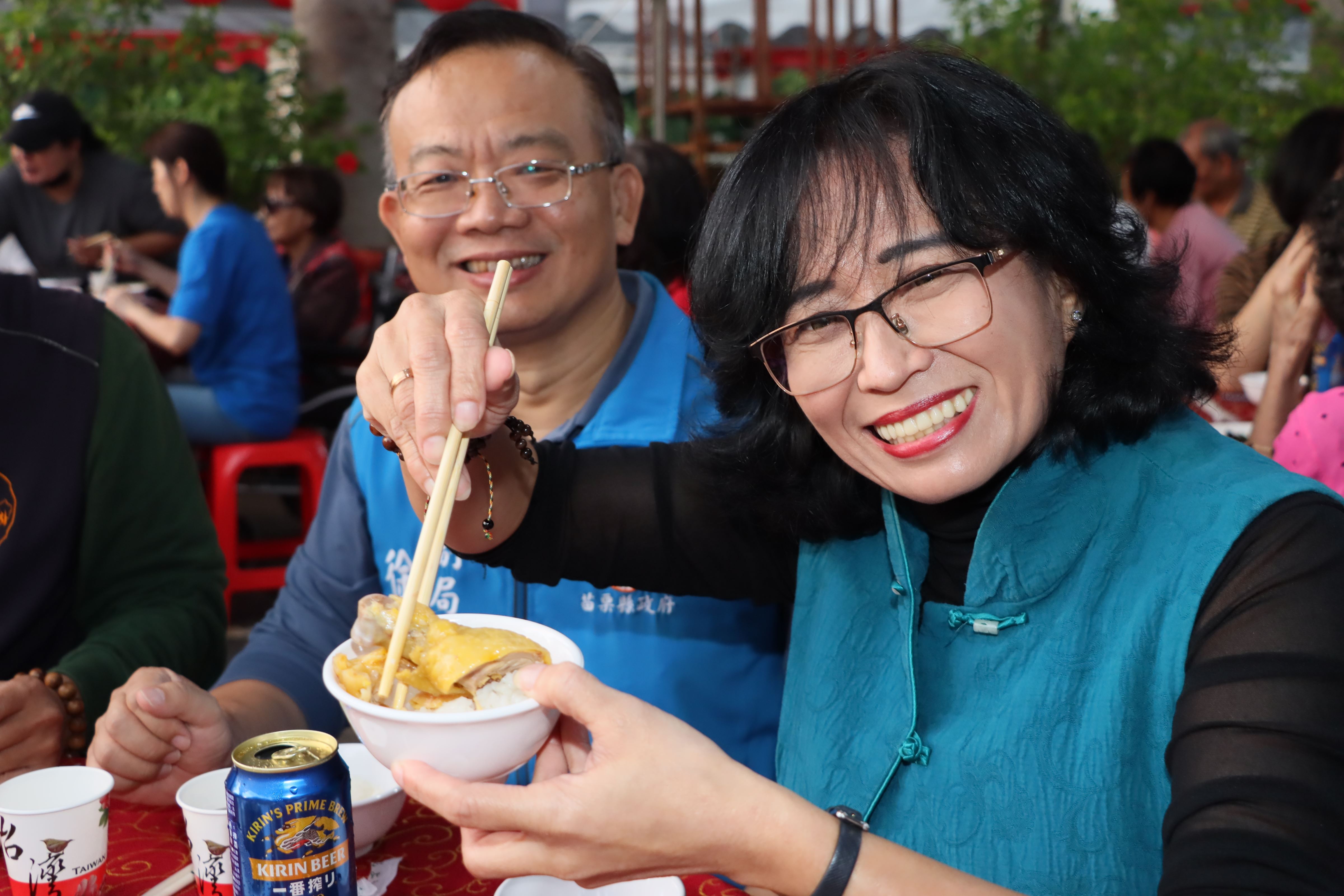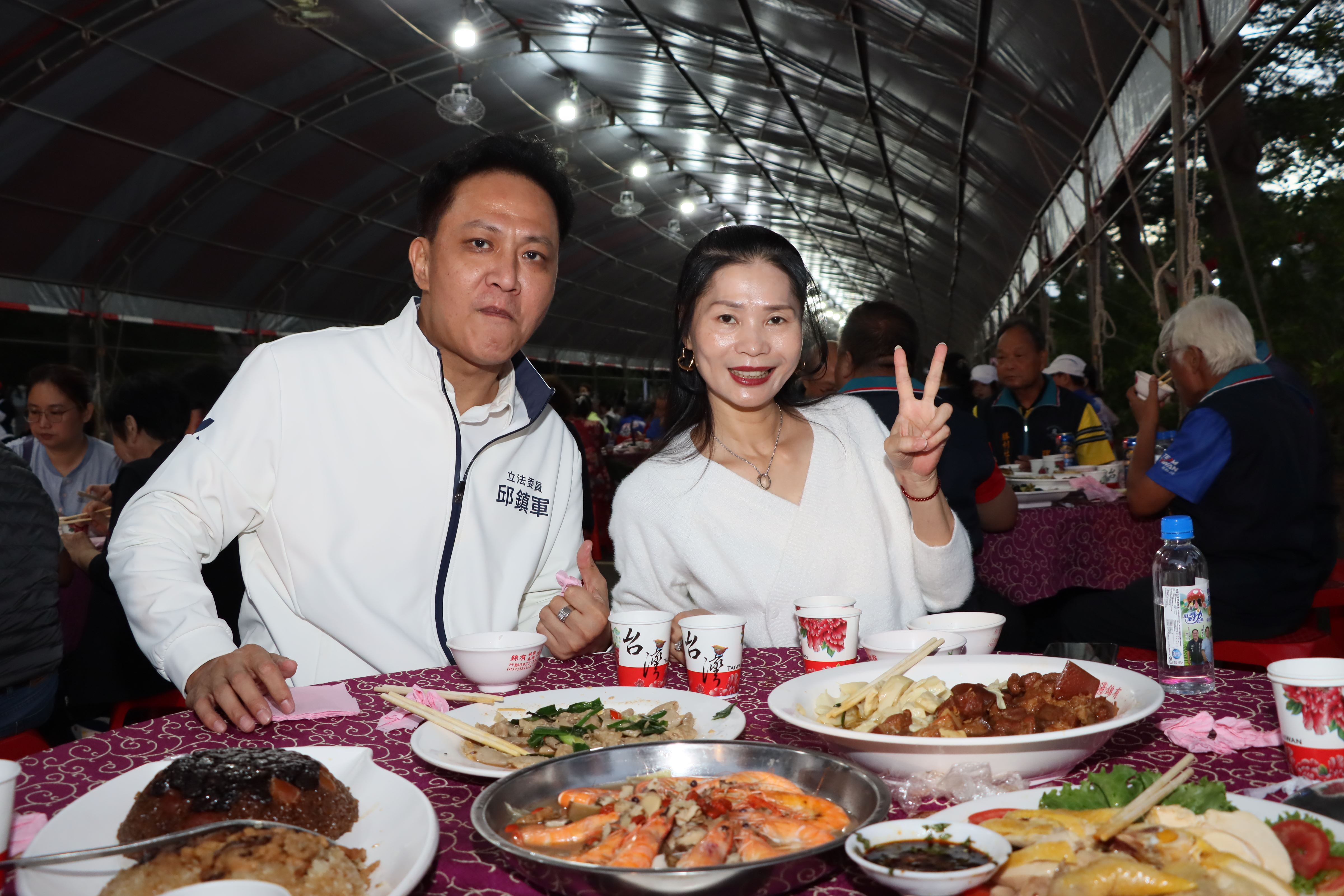 苗栗2025「九降風起・紙鳶情揚・美食飄香」風箏文化暨客家美食節熱鬧登場。為期三天的年度盛會昨(24)日下午於苗栗河濱公園盛大揭幕,今日接著登場的就是客家四炆四炒晚宴暨風箏節青春星光之夜,副縣長邱俐俐與立委邱鎮軍賢伉儷、苗栗市長余文忠、議長秘書周啟明、議員鄭碧玉、孫素娥、許櫻萍、徐筱菁、楊明燁、主席陳仁杰、文觀局副局長徐建男及地方代表等共襄盛舉,一同享用客家經典四炆四炒佳餚。