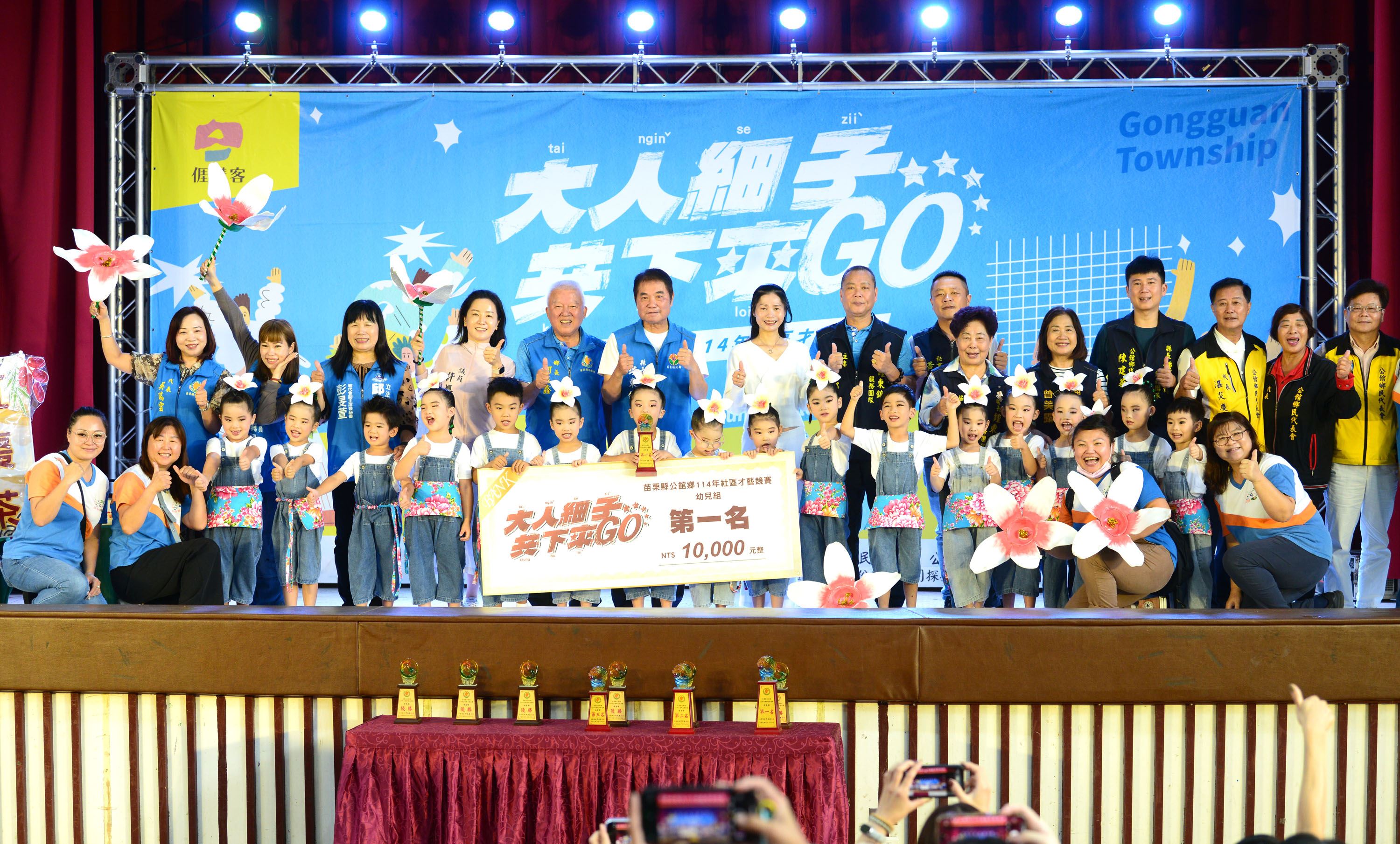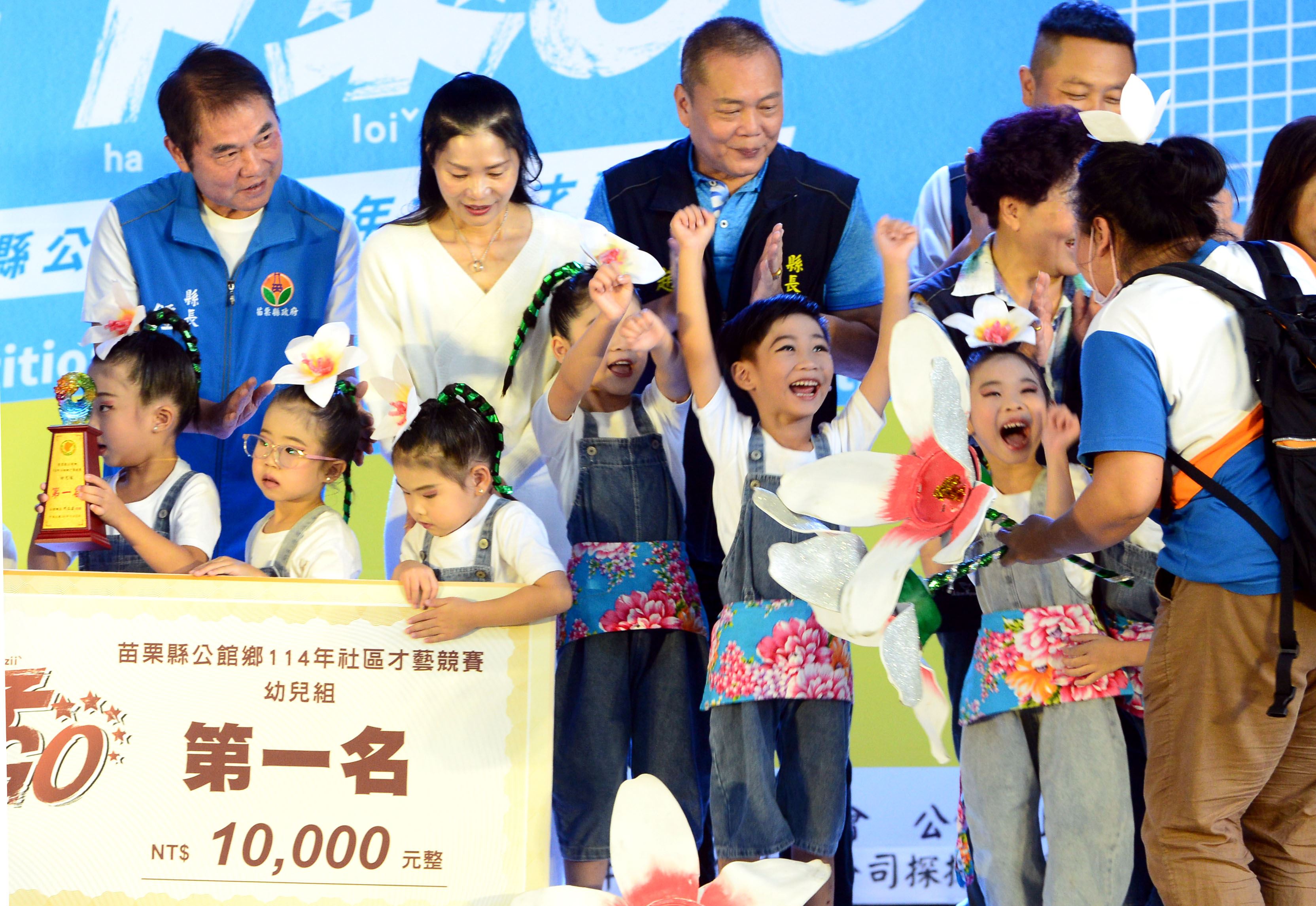 公館鄉今天在公館國小舉辦114年社區才藝競賽「大人細子共下來GO」,共25支隊伍齊聚現歌藝、秀舞技、拼創意,競爭相當激烈。比賽結果,社區組由中義社區發展協會脫穎而出,蟬聯第一;幼兒組則由私立小豆荳幼兒園奪冠。