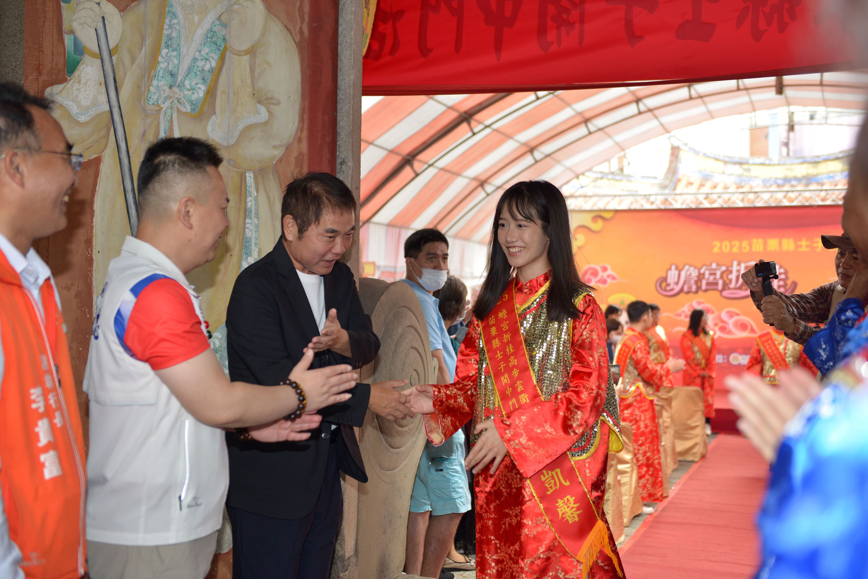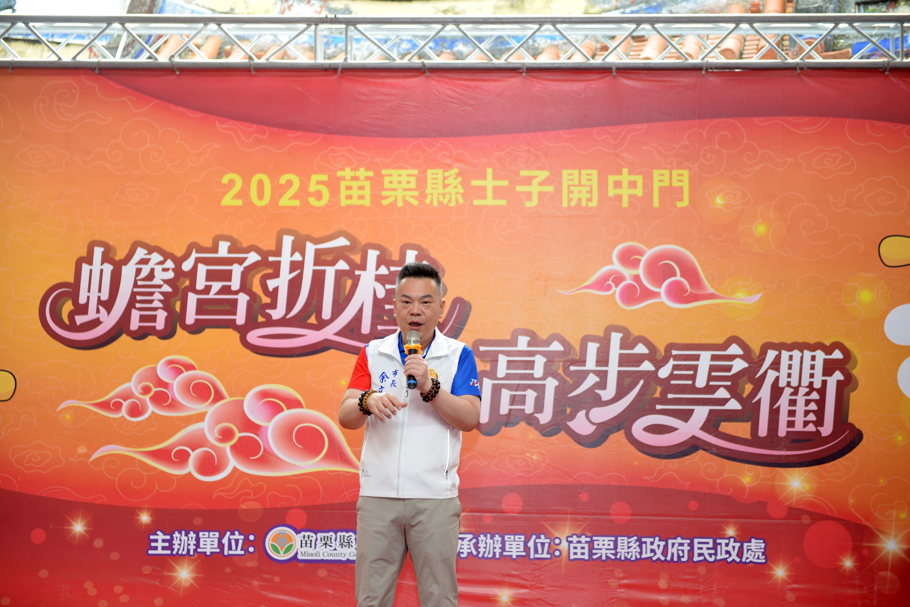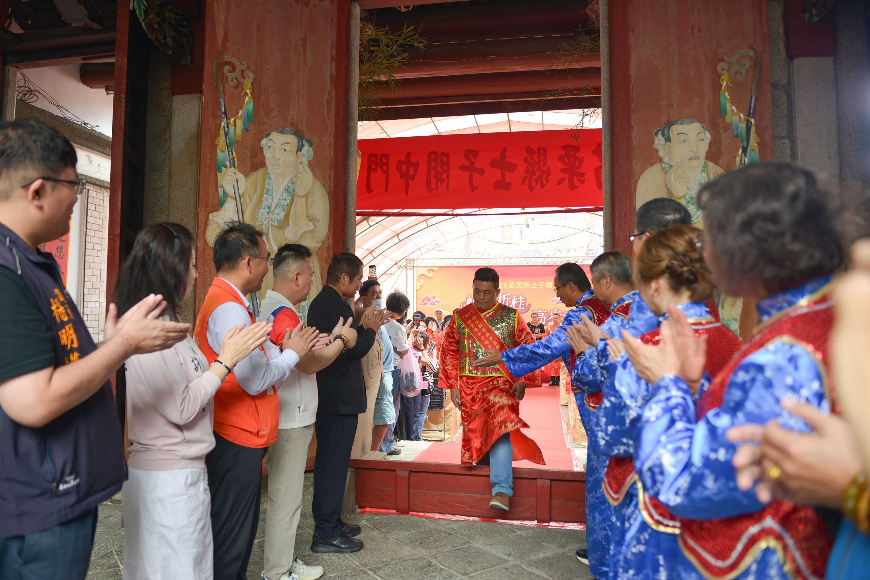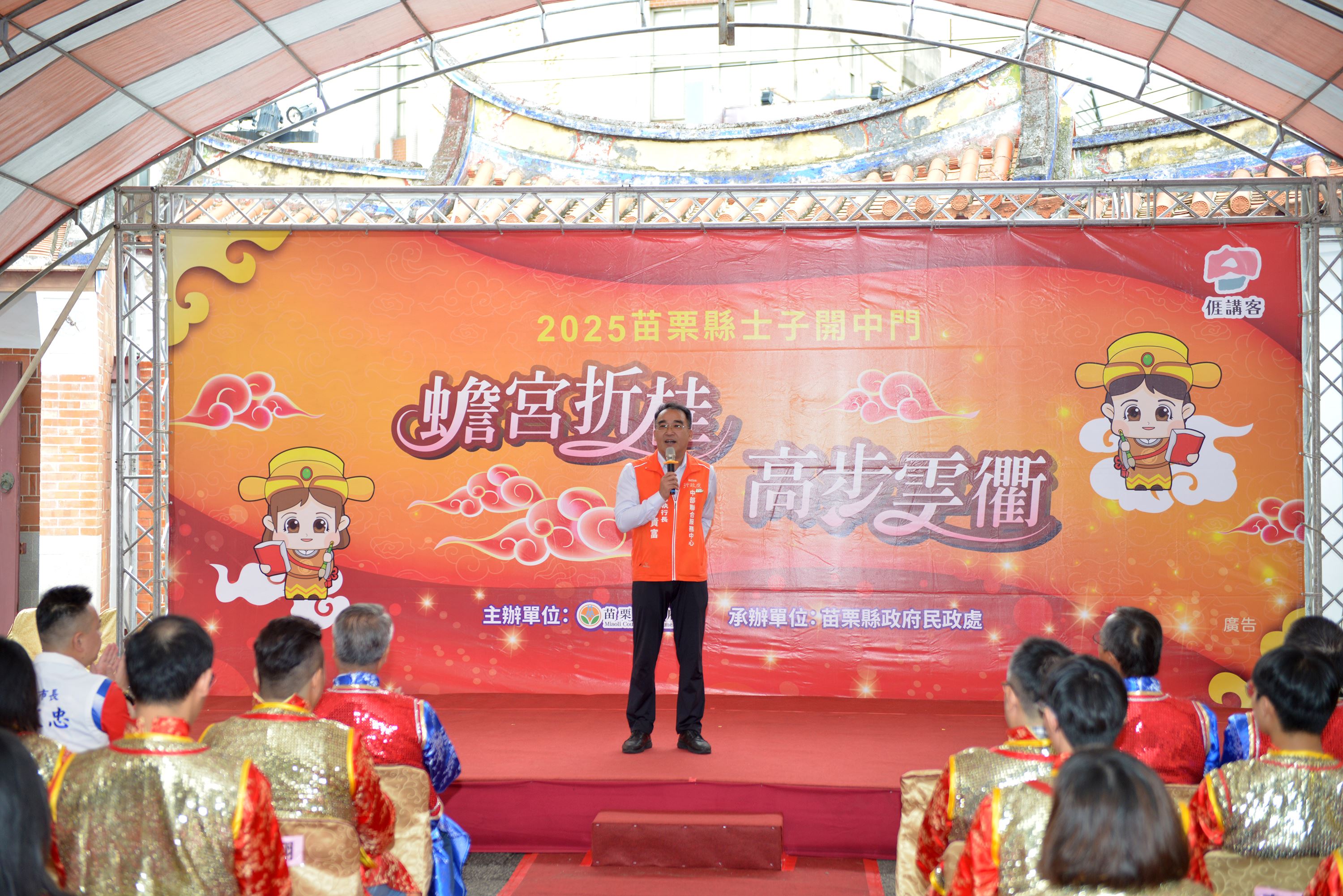 苗栗縣政府為弘揚崇文重道精神、嘉勉學子奮發向上,10月25日上午在苗栗市文昌祠舉辦「2025苗栗士子開中門」活動,10位博士及20位高考及格的士子披紅挂綵,循古禮「開中門」祭聖,感受光耀門楣的榮譽,藉此鼓勵青年奮發向學之志。苗栗縣長鍾東錦也到場恭賀各位士子,並宣布地方特考明年開始在苗栗設考場,嘉惠本縣考生。