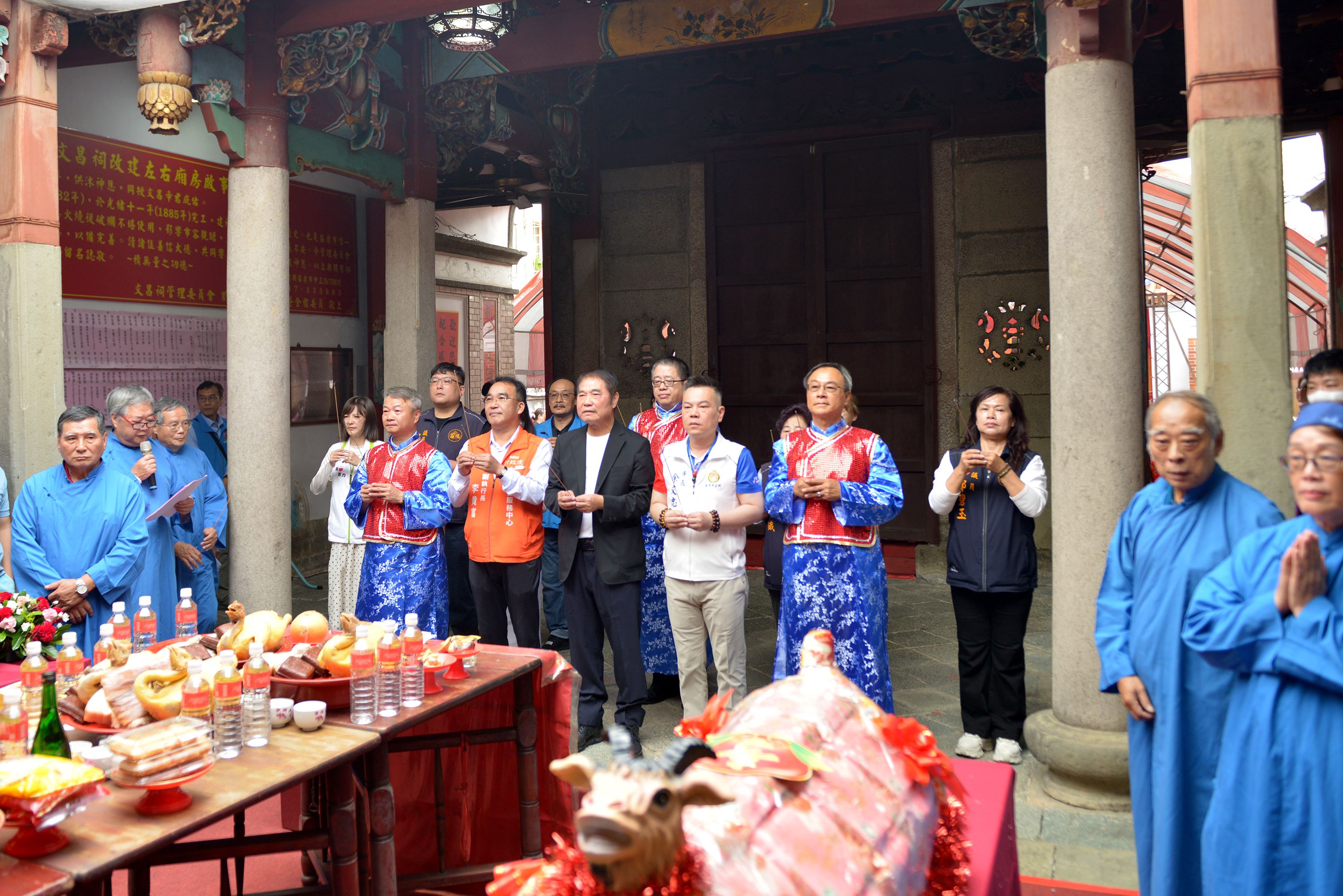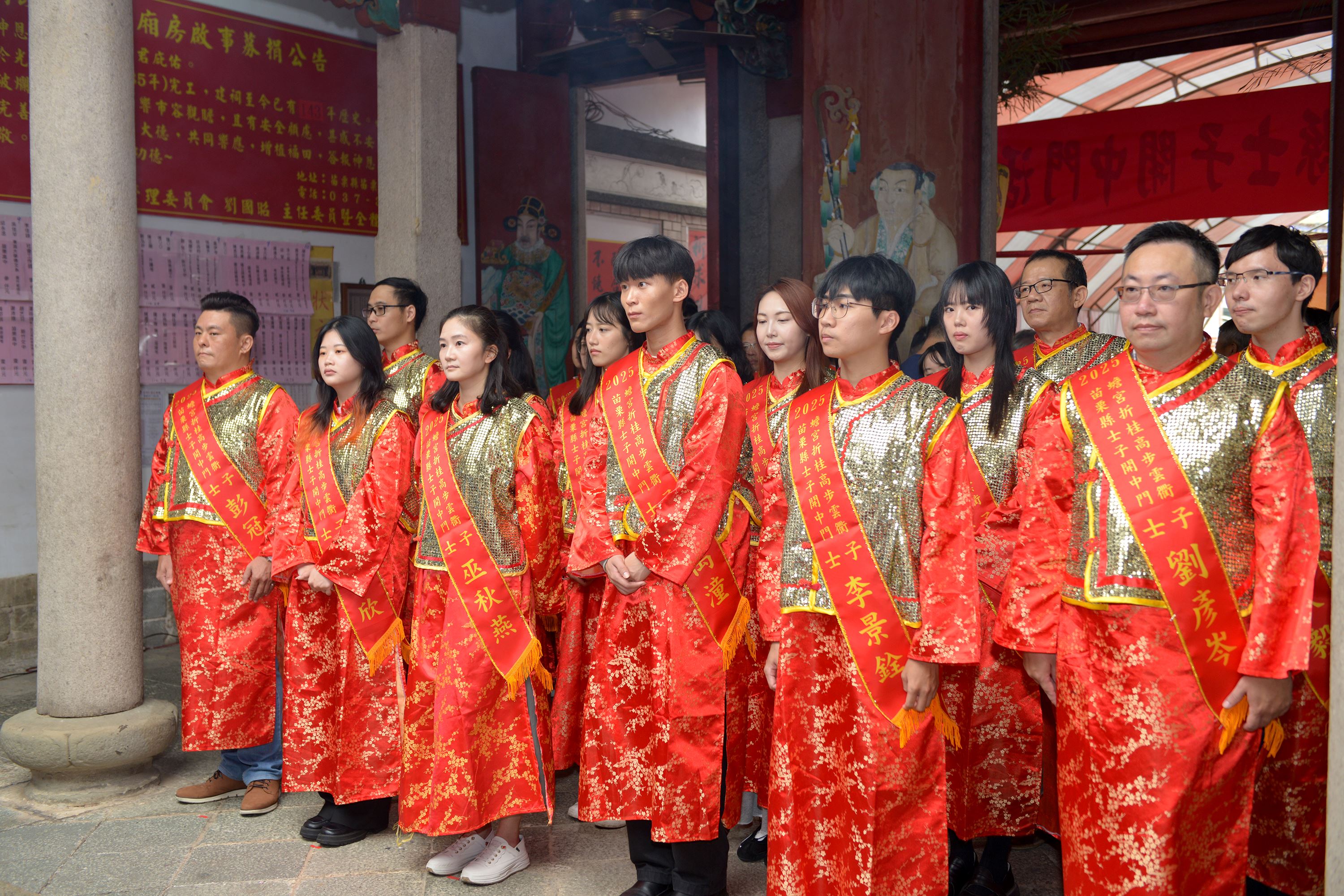 今日到場一同共襄盛舉的有苗栗縣長鍾東錦、苗栗縣議員孫素娥、鄭碧玉、楊明燁、徐筱菁、許櫻萍、苗栗市長余文忠、國立聯合大學校長侯帝光、私立育達科技大學校長吳菊、行政院中部聯合服務中心副執行長李貴富、苗栗縣議會秘書長范陽添、縣府民政處長巫恒昭、副處長林國竹等。30位士子披紅挂綵,在鐘鼓聲中,依序從中門進入文昌祠,循古禮進行三獻禮祭聖,儀式莊嚴肅穆,士子的家人、朋友都到場觀禮,分享榮耀。