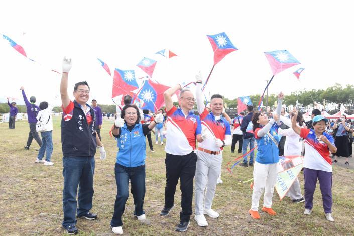 風箏文化暨客家美食節系列活動今年邁入第15年,承襲傳統也發揚光大,今年適逢光復節3天的連續假期,市公所、代表會及贊助單位精心策畫連續3天的精彩活動。今日下午2時,副縣長邱俐俐、市長余文忠、代表會主席陳仁杰及贊助的中油、台肥、長春等單位代表,連袂出席開幕式,有藍天白雲與正好的風勢加持,大家一同放飛象徵團結與幸福的國旗風箏,為活動掀起第一波高潮。
