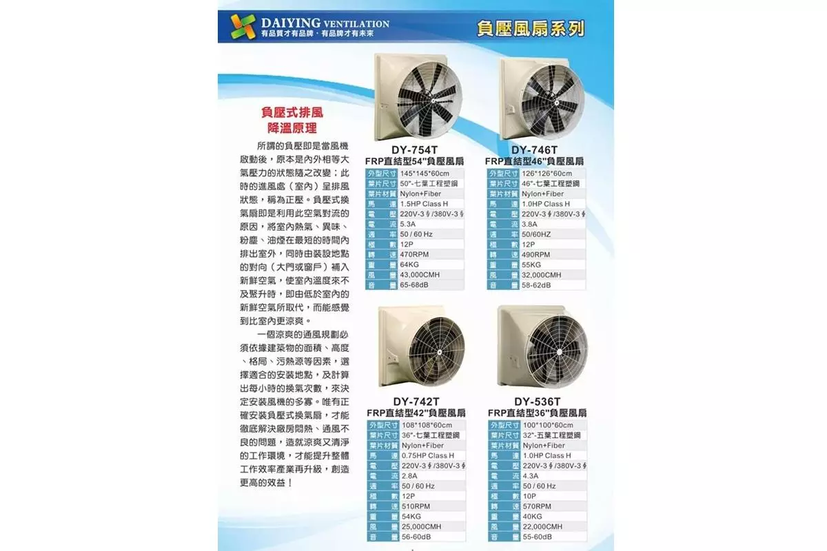 除了客戶讚譽產品負壓風扇之外,大穎通風工程的產品線涵蓋全面,包含: