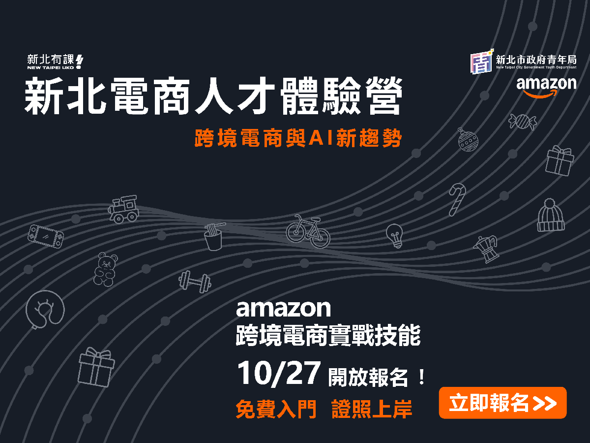 有鑒於跨境電商與AI應用的蓬勃發展,新北市政府青年局掌握新時代商業趨勢,首度與amazon合作推出「新北電商人才體驗營」,打造經營跨境電商的人才培育計畫。參與的學員不僅可完整掌握B2B企業數位拓銷模式,通過測驗後更可取得「CEPT-AMAZON亞馬遜跨境電商技能認證」。此外,體驗營還加碼2堂各電商領域都適用的行銷課程,無論是新手求職還是待業轉職,一站式備齊電商產業知識。全程活動僅需繳納保證金。即(27)日起開放報名,每堂課共開放50個名額,快來取得由amazon官方授權的全球跨境電商證照吧!