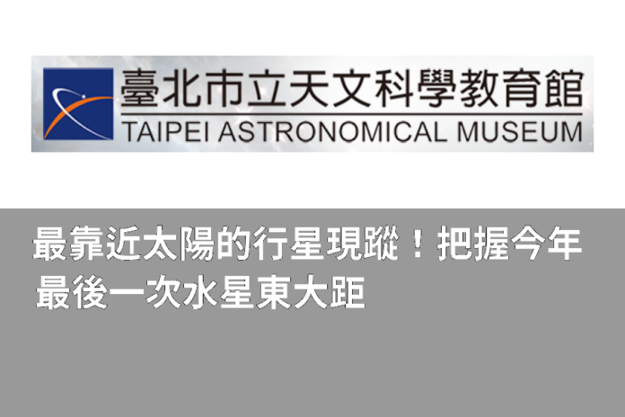 由於適合觀賞的時間非常有限,因此水星又有「最難觀賞行星」之稱,錯過這次,要等到12月8日的西大距才再有適合觀賞機會,不過得早起,才能在日出前看見其身影。更多相關天象資訊,請參閱臺北天文館網站「天象預報」。