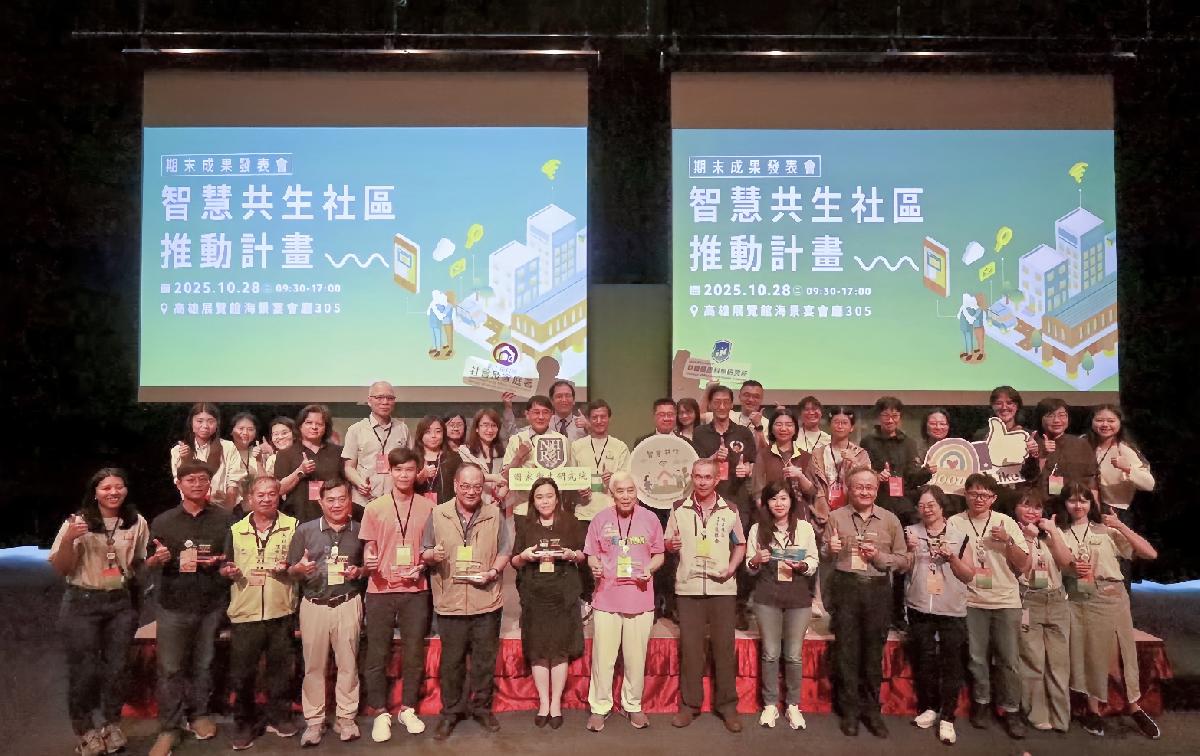 隨著臺灣正式邁入超高齡社會,「健康生活、在地安老」已成為國家發展高齡友善環境的核心目標。今(28)日衛生福利部社會及家庭署攜手財團法人國家衛生研究院在高雄展覽館舉行「智慧共生社區成果展」,現場集結縣市政府代表、觀摩社區、專家輔導團隊及全臺11處智慧共生示範社區,展現社區以「人」為本的精神及融入科技輔助的智慧共生,展現社區創新實踐模式。