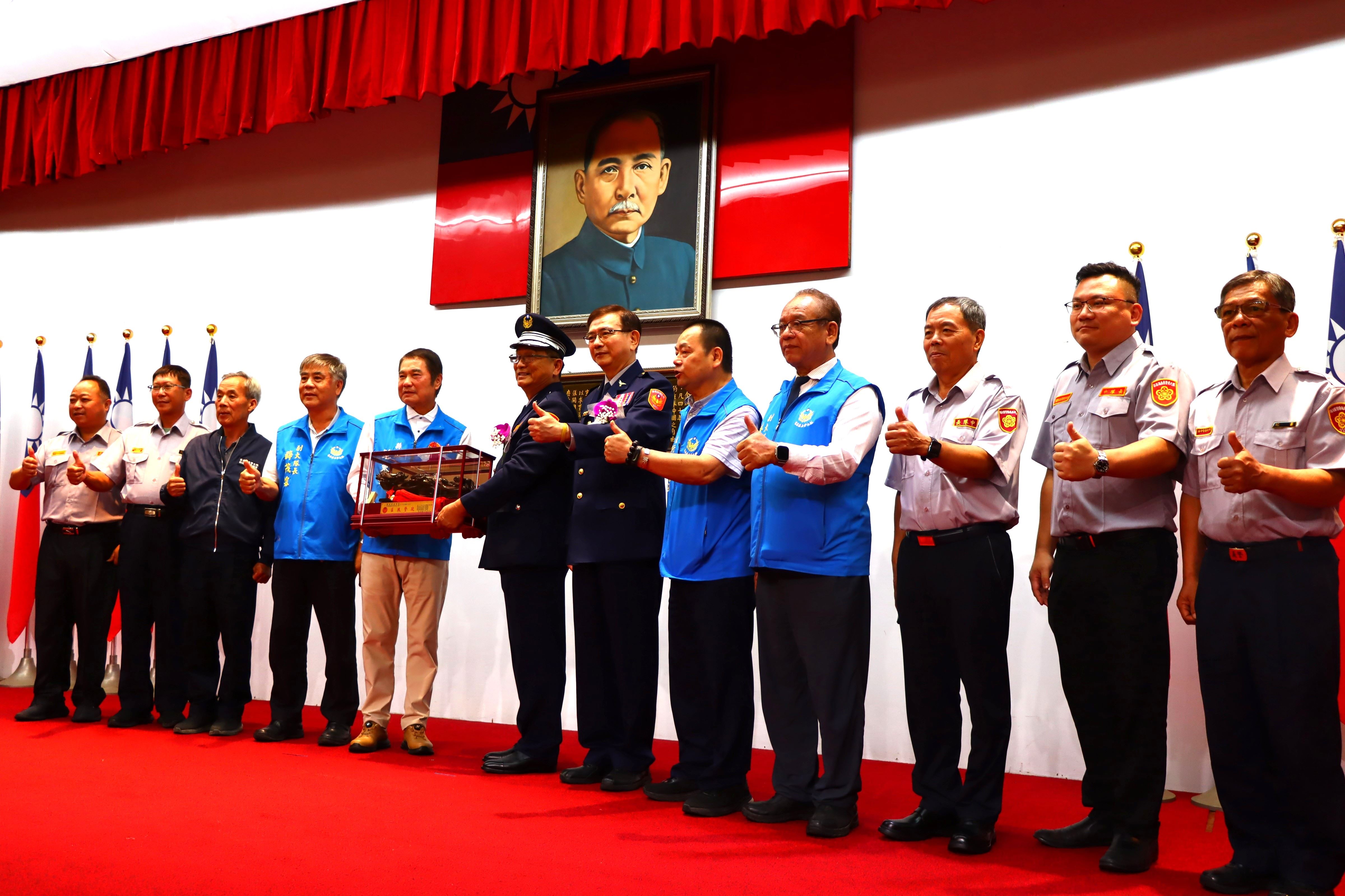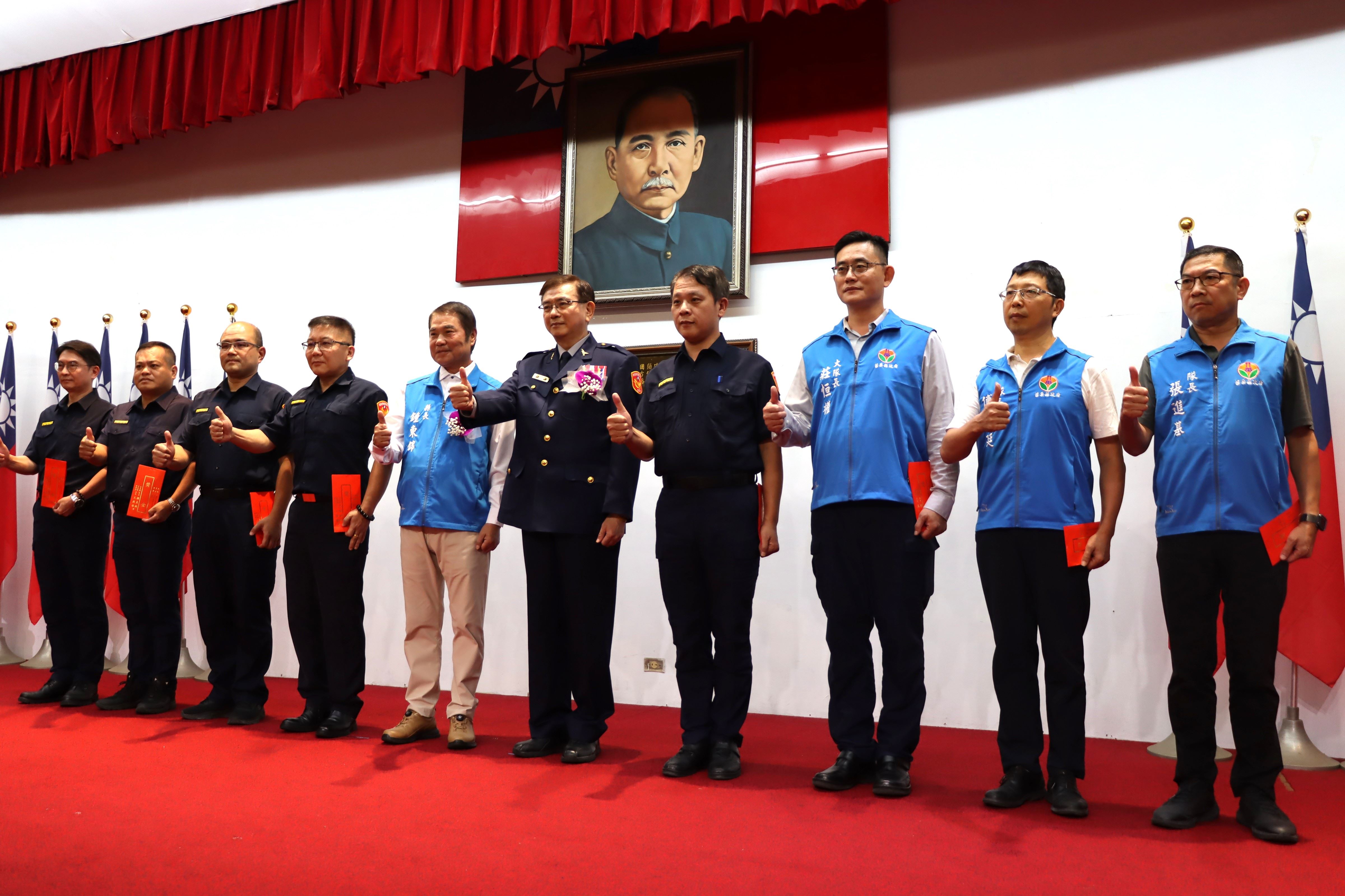 三、頒發114年7至9月受理民眾報案服務態度績優人員榮譽狀:苗栗分局南苗所警員彭道亮。