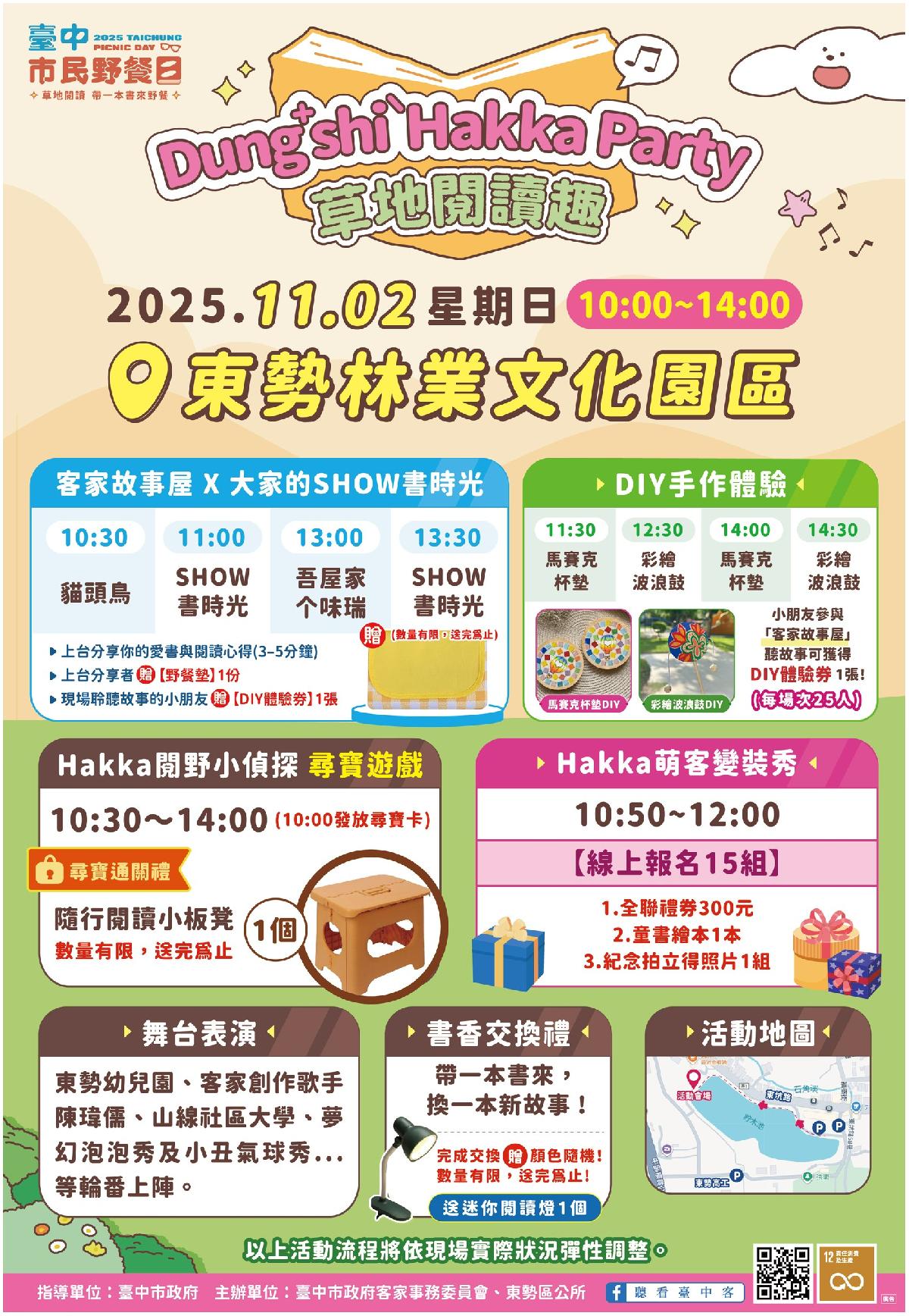 2025台中市民野餐日11月2日登場!相約東勢林業文化園區 DungShi Hakka Party一起Chill野餐趣