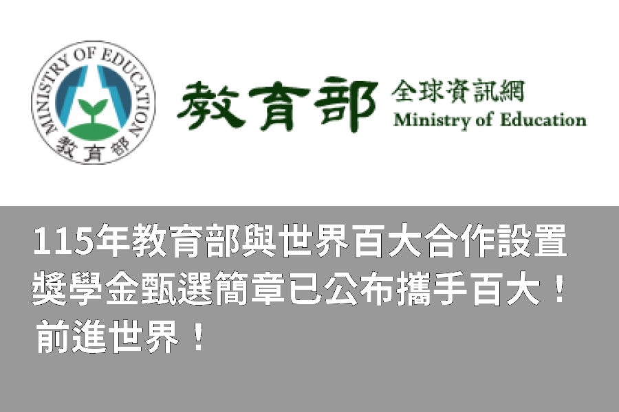 115年教育部與世界百大合作設置獎學金甄選簡章已公布 攜手百大!前進世界!