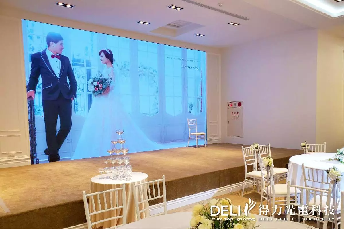某知名婚宴餐廳面臨品牌形象老化的問題,決定進行一次全面性的影像視覺形象升級。得力光電接手後,迅速從整體規劃、完善設計到施工,全程掌控專案,量身打造了大型LED電視牆結合LED字幕機的視覺展示系統,不僅呈現餐廳活動與婚宴精彩瞬間,更加入品牌故事與動態燈光效果,營造出浪漫與高質感的視覺氛圍。