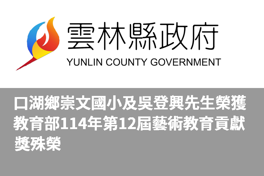 教育部114年第12屆藝術教育貢獻獎獲獎名單出爐,雲林縣由崇文國小及吳登興先生獲獎,張麗善縣長第一時間派員前往張貼紅榜表達祝賀。