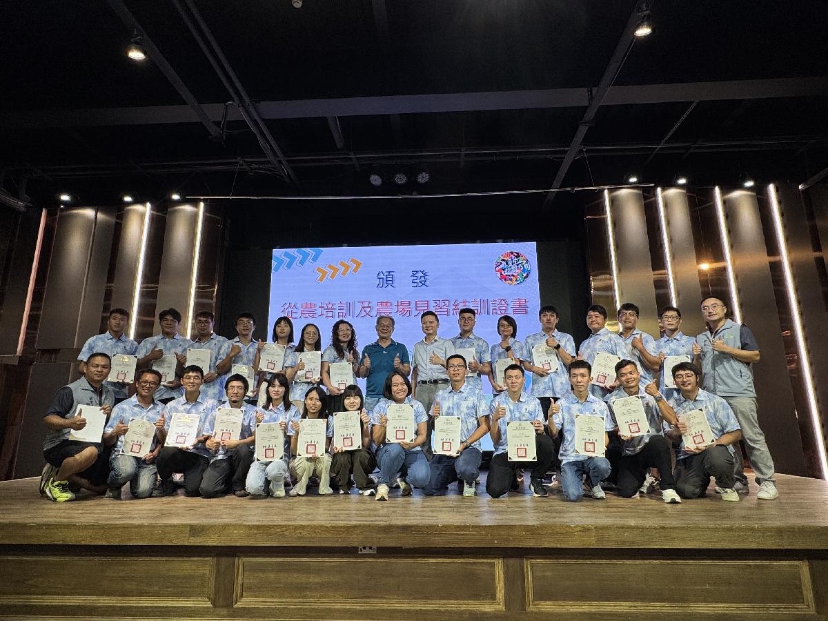 台中市政府農業局今(30)日舉辦「台中市青年農民輔導計畫—青年從農培訓」結訓典禮,共有28位學員順利完成農業基礎課程與農場見習培訓,正式結訓,準備返鄉投入農業行列。典禮現場除頒發學員結訓證書外,亦特別頒贈13位農場主感謝狀,感謝他們提供學習場域,並無私傳授專業栽培技術與經營經驗。農業局也期勉學員們將台中市的輔導資源與所學專業分享出去,吸引更多青年返鄉務農,為地方農業注入新活力。