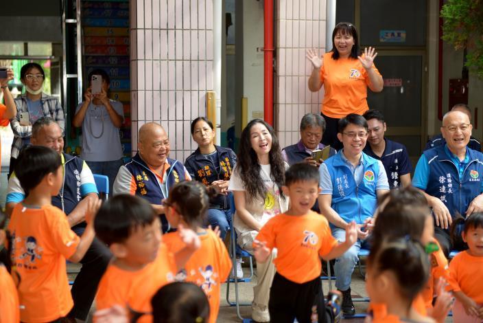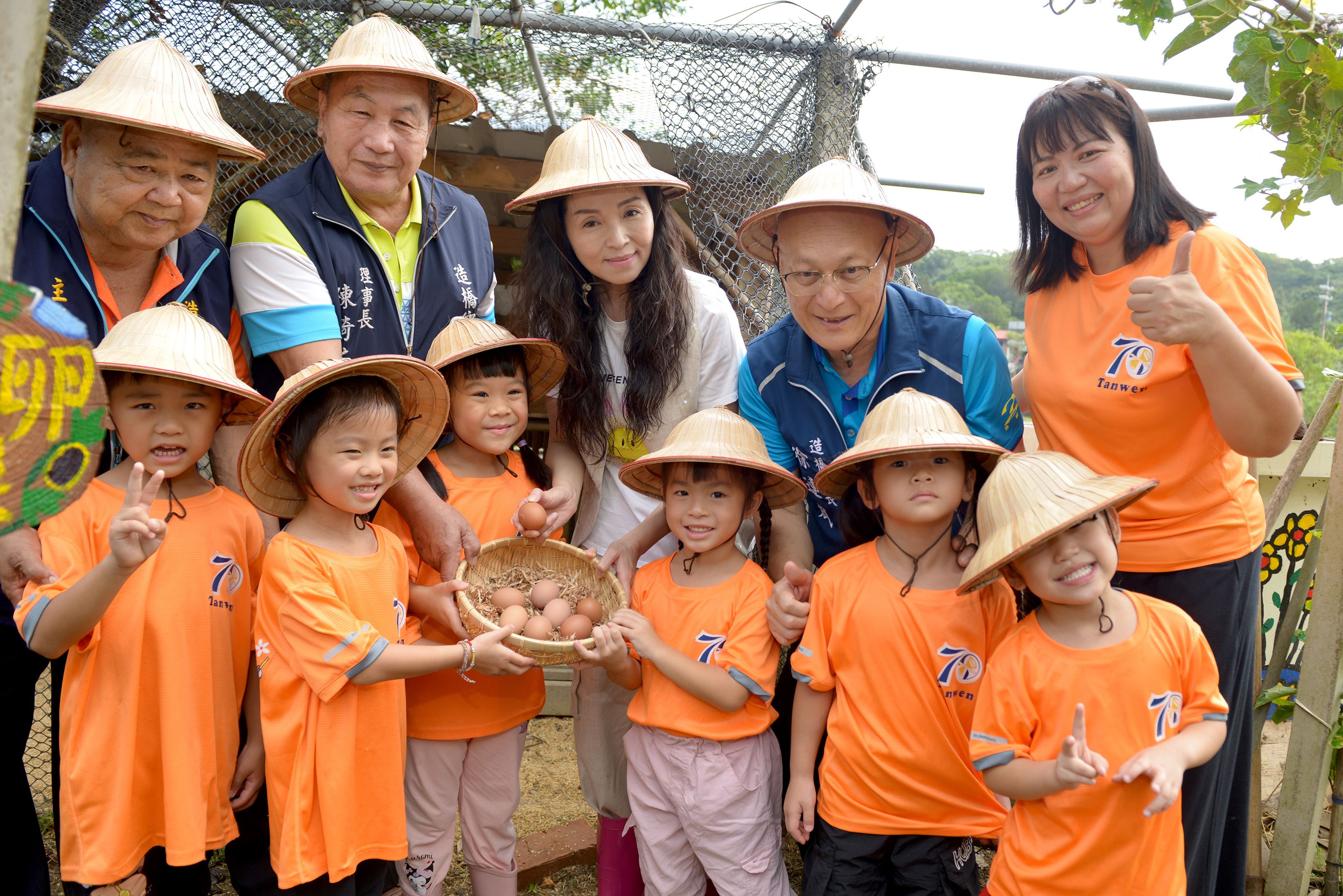 苗栗縣長鍾東錦夫人陳美琦10月30日上午來到造橋鄉談文國小附設幼兒園,體驗台灣台語沉浸式教學及學習區課程,幼師們以台語和幼兒們溝通,帶領著孩子律動、種菜、撿雞蛋、做麵點、美工課等,讓本土語言融入日常課程中。陳美琦在和孩子們體驗過課程後,表示相當驚艷,也感謝教學團隊的用心,讓學習更加有趣。