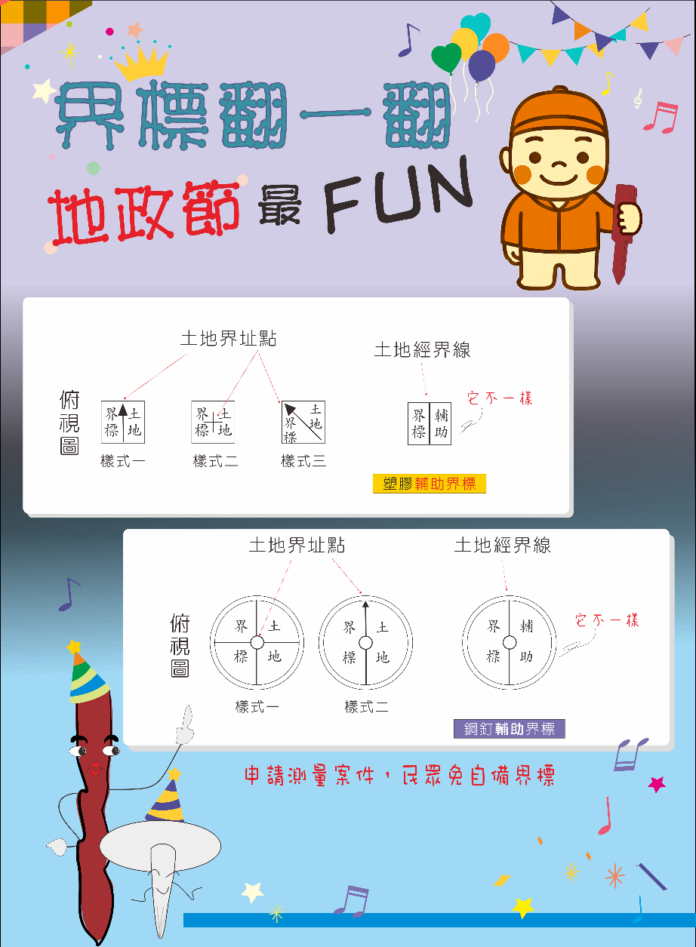 板橋地政事務所誠摯邀請市民朋友共襄盛舉,歡慶地政節的同時,也能透過遊戲輕鬆了解地政業務,一起「翻出地政新知識,玩出學習新樂趣」!還想了解更多地政相關資訊?歡迎11月11日當天來板橋地政事務所走走,參加「界標翻一翻,地政節最FUN!」活動不僅長知識又可拿獎品。
