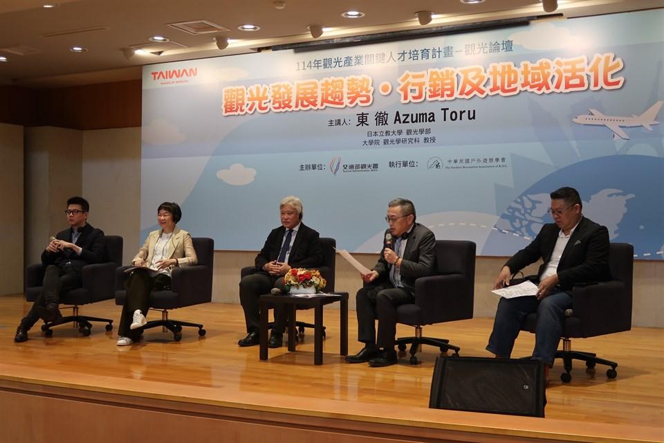 關注國際旅遊趨勢,以在地特色吸引旅客,一直是交通部觀光署致力推動的目標,也是推動臺灣觀光發展的重要關鍵。為協助我國觀光產業以在地特色打造旅遊品牌,交通部觀光署今(31)日於交通部運輸研究大樓國際會議廳舉辦「114年觀光產業關鍵人才培育計畫」觀光論壇,聚焦疫後觀光發展趨勢、地域活化及觀光品牌,邀請日本立教大學觀光學部東徹(Azuma Toru)教授進行專題演講,並與國內觀光領域學者與觀光產業業者有精彩對談,為觀光產業的發展引領出新方向!