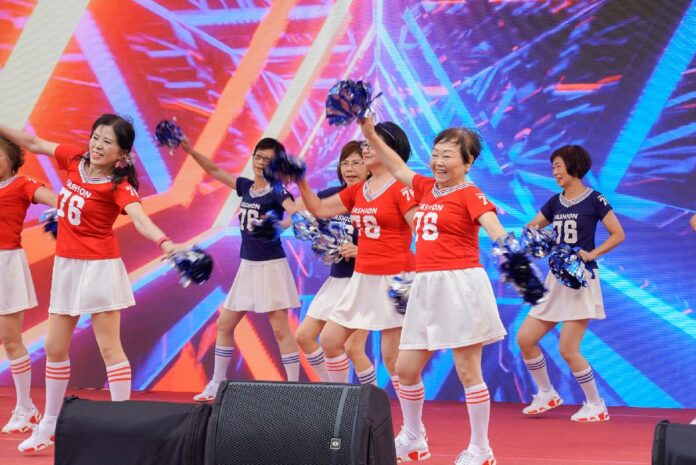 長輩不老!一場屬於長輩的青春派對!「樂齡共融 新潮同樂會」新北市社區照顧關懷據點成果展1日在板橋第一運動場登場,現場不僅有據點長輩帶來精彩表演與手作展攤,更邀請《高年級超進化》實境節目藝人董月花、王少偉、董仔親臨現場與市長侯友宜、長輩同樂,在台上大玩互動遊戲,為活動掀起熱力高潮。