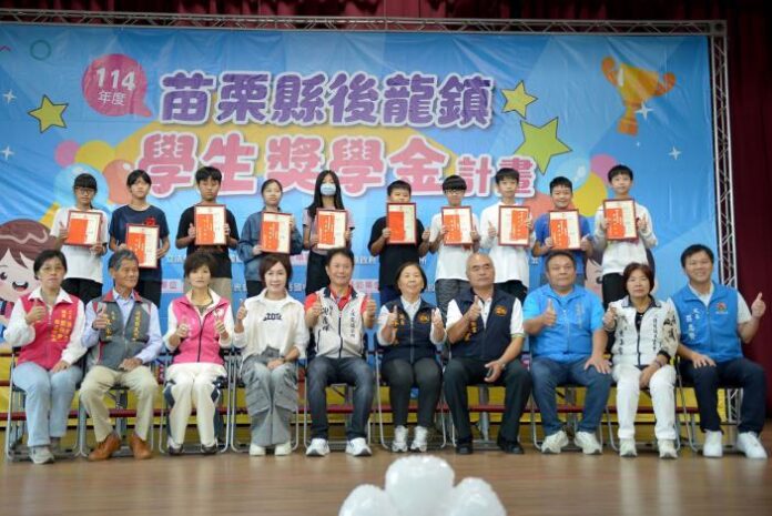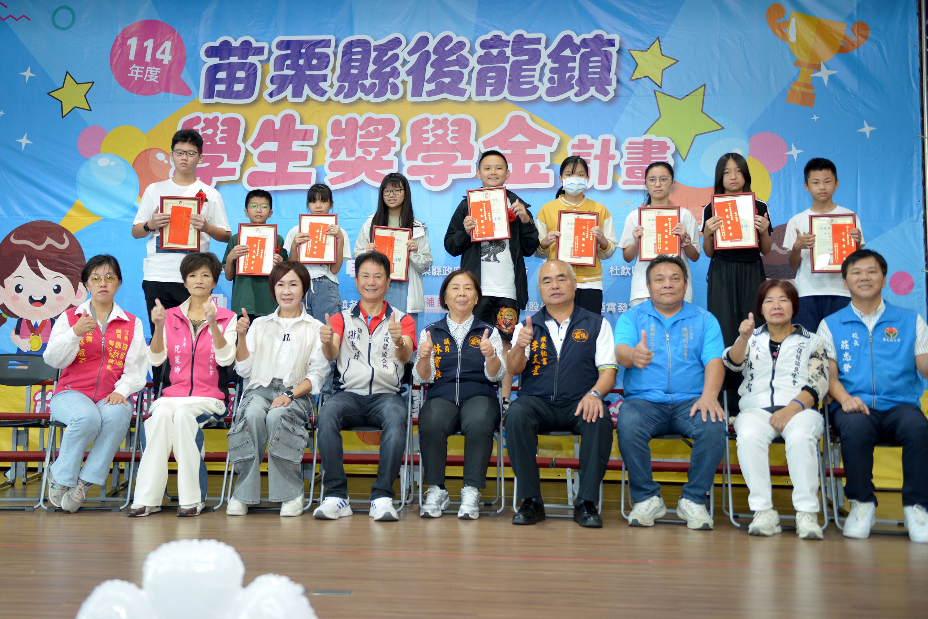 後龍鎮公所頒發獎學金藉以鼓勵鎮內成績優秀的學生,11月2日上午在後龍鎮公所辦理頒獎典禮,共頒發280位學生獎學金,總金額達63萬9600元,苗栗縣長鍾東錦也到場祝賀各位獲獎學生,勉勵學生養成閱讀及運動的好習慣,可以獲益終身。