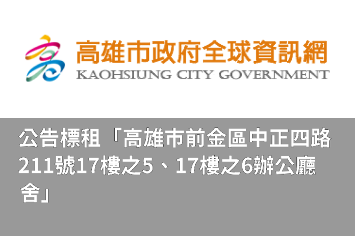 - 公開標租之標的:高雄市前金區中正四路211號17樓之5、17樓之6辦公廳舍。