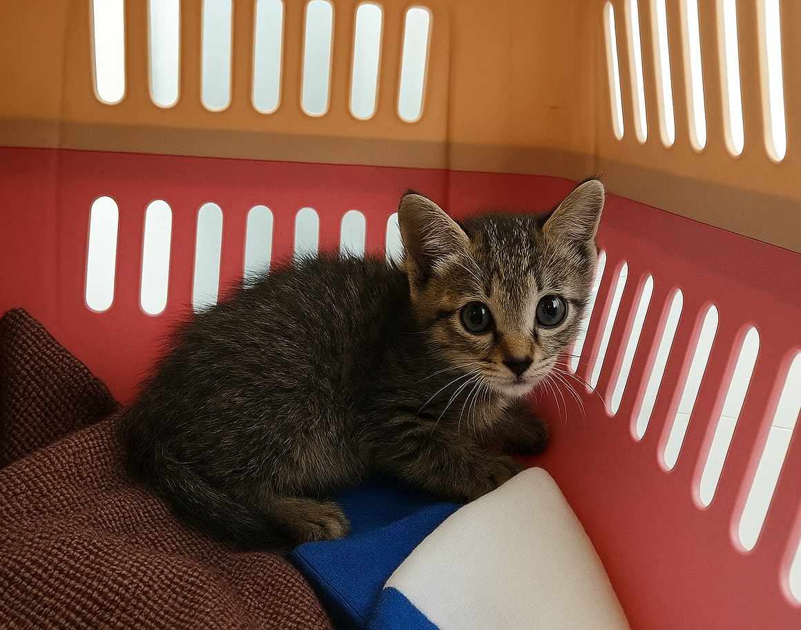 新北市三峽地區一隻虎斑浪貓,附近居民暱稱為「魷魚哥」,因口炎被通報救援送至動保處時,因疼痛而整日蜷縮在角落,不願進食,體重也明顯下降。經獸醫師診斷後,在藥物治療期間,照護人員除耐心提供適口性佳的軟質食物與良好的口腔維護外,亦經常輕聲安撫、陪伴牠,經過一段時間的悉心照料,魷魚哥逐漸恢復食慾,體重回升,嘴角也不再流出濃稠口水,重現健康模樣。目前牠已康復,將到動物之家靜待有緣人認養,期盼能有一個溫暖的新家。