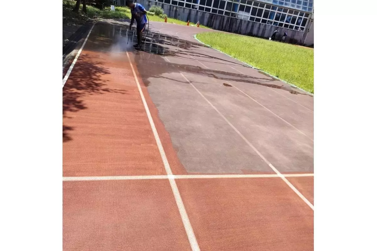 使用日本岩田汽油單缸引擎與義大利幫浦等高規格設備,搭配具高空作業證照的專業人員,無論是外牆、地面或大型場域皆可施作,潔淨力強、效率高。
