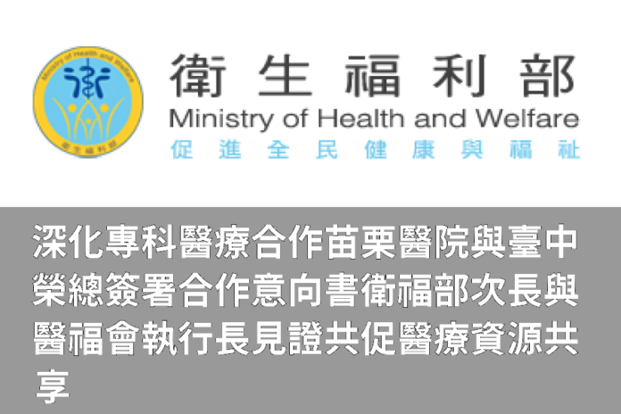 衛生福利深化專科醫療合作 苗栗醫院與臺中榮總簽署合作意向書 衛福部次長與醫福會執行長見證 共促醫療資源共享