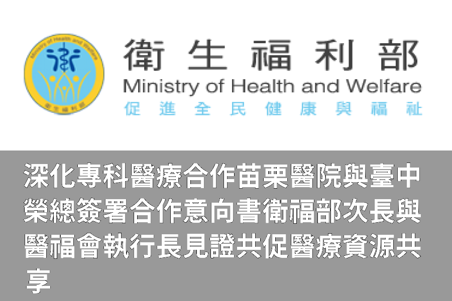 深化專科醫療合作 苗栗醫院與臺中榮總簽署合作意向書 衛福部次長與醫福會執行長見證 共促醫療資源共享