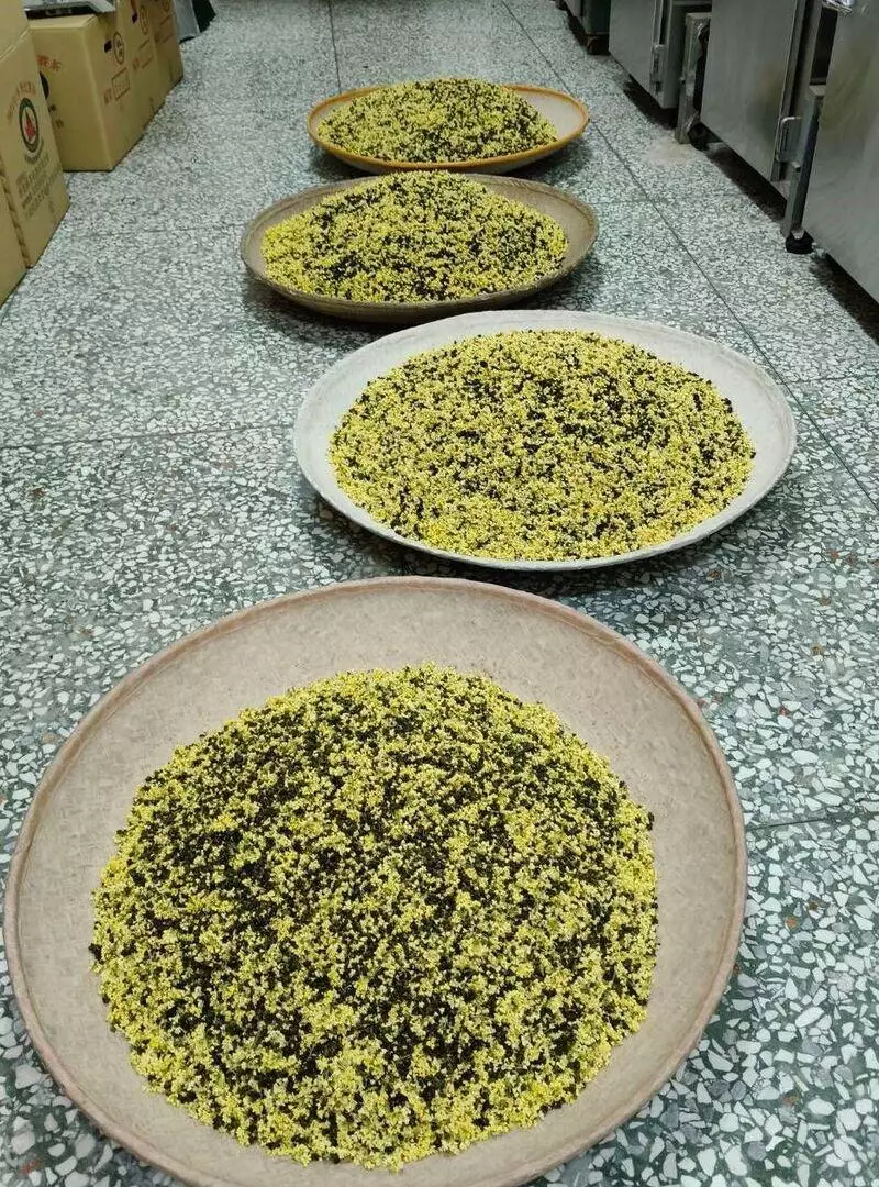 在製作桂花茶的過程中,茶廠特別選擇清晨採摘的桂花,搭配茶葉進行窨製處理,使花香與茶香在茶湯中同步綻放。這樣的工藝,不僅提升茶葉風味,也將山林、花香、茶韻三者合為一體,成為季節限定桂花茶的亮點。