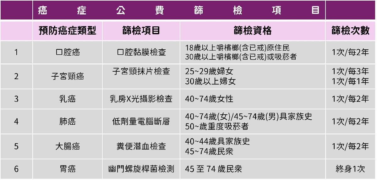 ※癌症公費篩檢項目(表格由中興院區提供)
