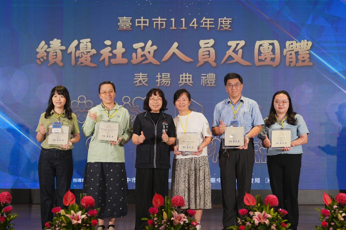 台中市政府社會局今(6)日於潮港城國際美食館舉辦「114年度績優社政人員及社福團體表揚典禮」,向在第一線默默付出、以專業與熱忱守護市民的社政夥伴與社福團體致上最高敬意。
