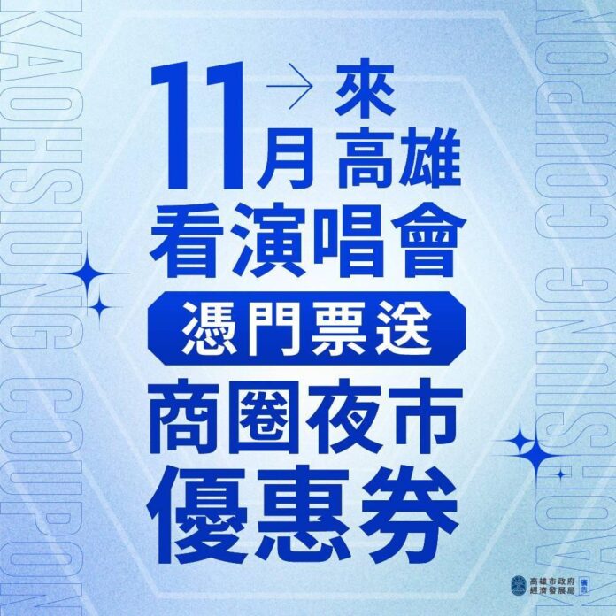 香港天王「郭富城」即將於本週末11月8、9日以《郭富城ICONIC 世界巡迴演唱會》在高雄巨蛋強勢登場,準備為廣大歌迷獻上最熱血的難忘夜晚,搖滾教父「伍佰」也將於11月22、23日重返巨蛋舞台,用《伍佰& China Blue Rock Star2演唱會》再現傳奇魅力,同時指標性K-POP女團「TWICE」亦將於同週末(11月22日-23日)首度登上世運主場館,帶來出道十週年《TWICE<THIS IS FOR> WORLD TOUR IN KAOHSIUNG》夢幻演出。為讓粉絲們在高雄留下更多美好回憶,高市府除延續推出50元商圈夜市優惠券,同時攜手餐飲、百貨、夜經濟等各式店家祭出加碼優惠,並與舞蹈教室及餐酒館合作舉辦「K-POP隨播即跳」前夜祭活動,邀請歌迷朋友們一起尬舞,提前為接下來的演唱會熱身。