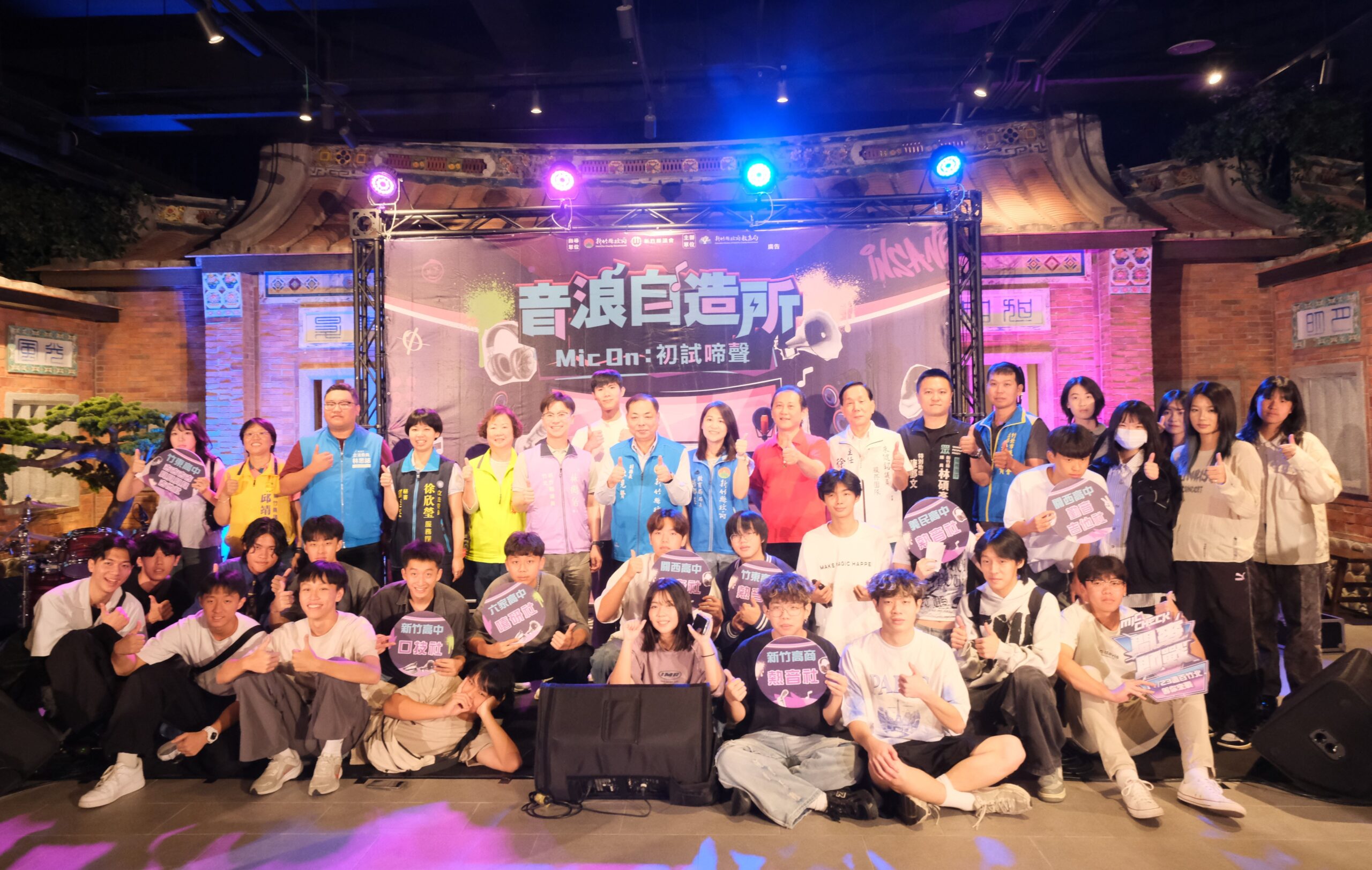 新竹縣政府持續打造青年多元展能舞台,昨(8日)於遠東百貨竹北店七樓古厝舉辦「Mic On:初試啼聲」校園音樂性社團聯合展演,來自11所桃竹竹高中職及大專院校的15組社團學生,以音樂揮灑創意盡情發光發熱,為青春留下美好回憶。