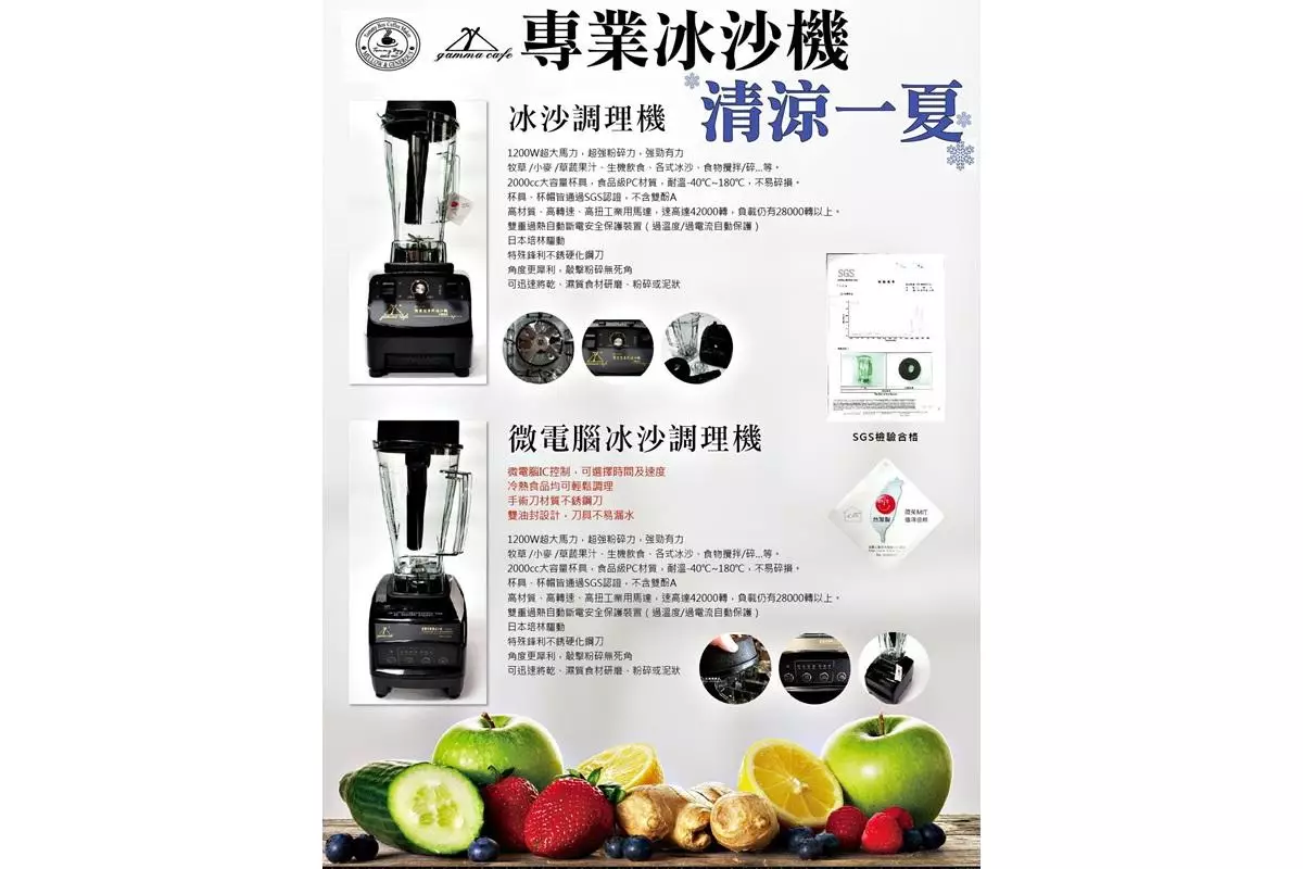 – 營業用機具:冰沙機、冷水壺、咖啡機及配件