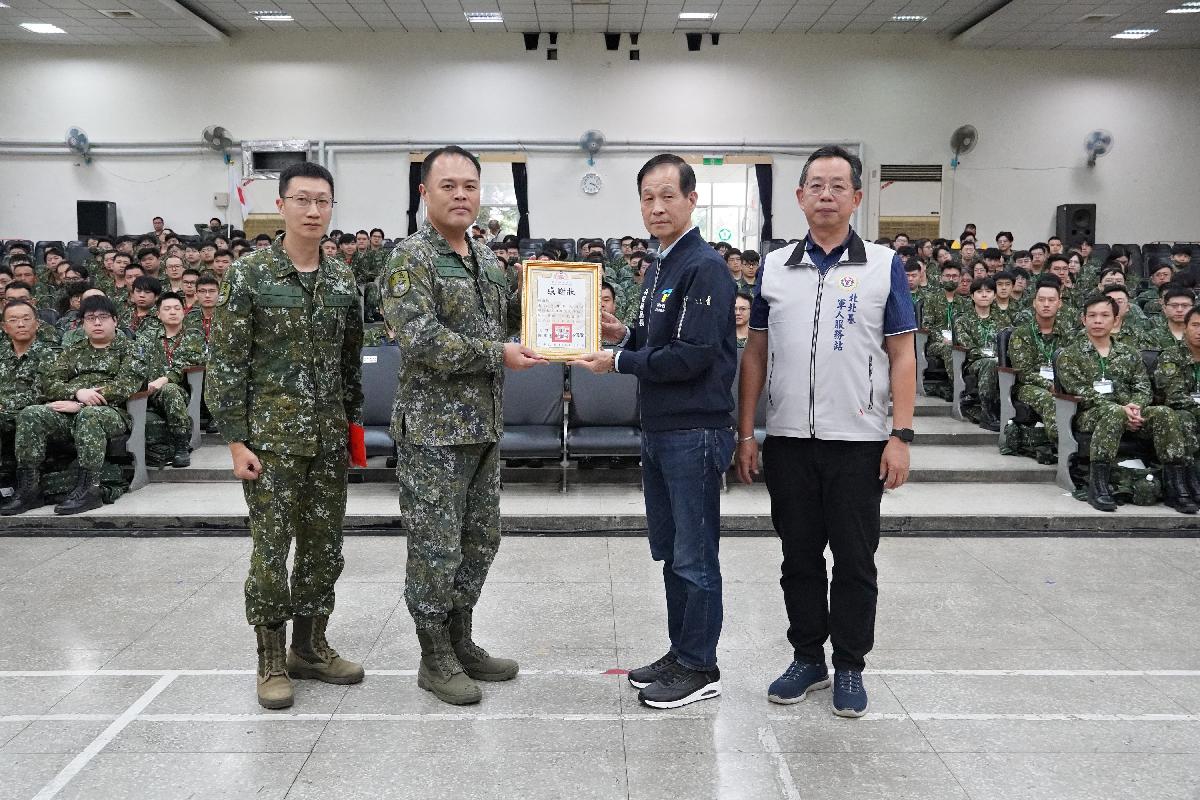 今(10)日下午臺北市政府兵役局李治安局長偕同臺北市軍人服務站吳遠里站長前往水源營區替代役中心,慰勞接受教育召集訓練的市籍憲兵後備弟兄,並感謝憲兵訓練中心後備旅對召員的照顧與辛勞,同時致贈慰勞金。