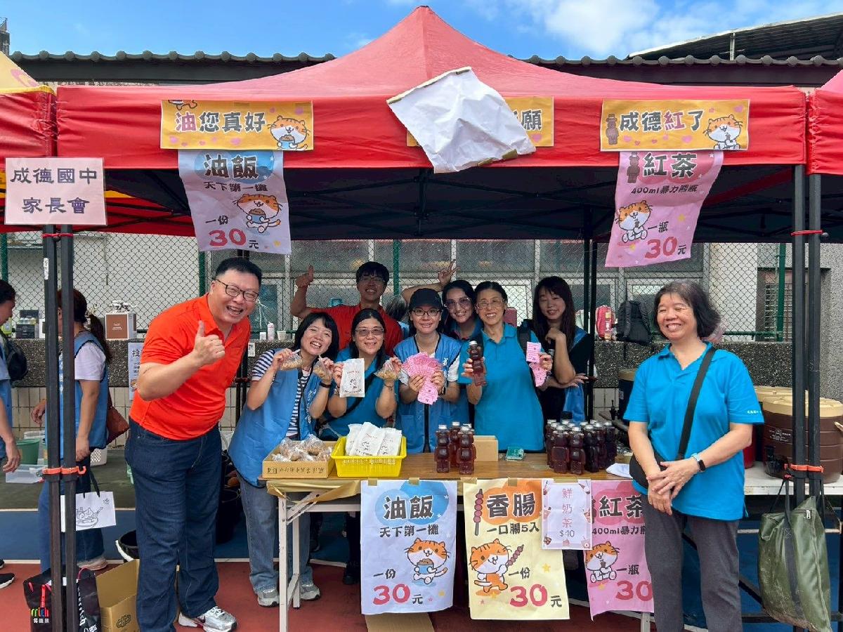 今年校慶的另一亮點是親師交流道「舒心苑」啟用儀式,象徵學校在家校合作的新里程碑。「舒心苑」提供教師與家長交流、休憩、共同備課與分享教育理念的空間,成為連結教師與家長的「溫暖橋樑」。謝扶成校長表示,希望藉此打造開放、溫馨的溝通環境,促進教育夥伴間的理解與支持,讓「一起為孩子更好」成為成德最美的共識。此外,今年校慶的愛心園遊會也充滿教育意涵。全校各班精心規劃攤位活動,並將所得10%的收入捐出,支持NGO公益團體(例如:台灣兒童暨家庭扶助基金會、台灣之心愛護動物協會、喜憨兒社會福利基金會等等),導師帶領學生利用課餘時間了解不同公益組織,再由全班共同決定支持對象,讓學生在歡樂中實踐關懷社會的精神,培養利他與感恩的品格。