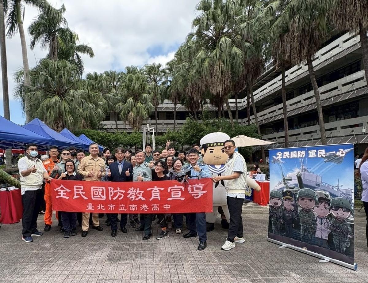 【臺北報導】為推展全民國防教育,落實全民防衛動員理念,臺北市立南港高中日前配合57週年校慶「五育卓越七彩飛揚」主題活動,邀請國軍單位辦理全民國防教育特展,除國軍人才招募設攤宣導外,並設有各軍種個裝及無人機陳展區,由專人實施介紹,同時進行T10B傘包背負、T91步槍及紅隼火箭彈雷指器射擊及國軍娃娃互動等體驗,讓學生及參與的師長與貴賓們了解國防相關知識,感受國軍保家衛國的責任與必要性,更體悟國軍戰訓及衛國之辛勞。