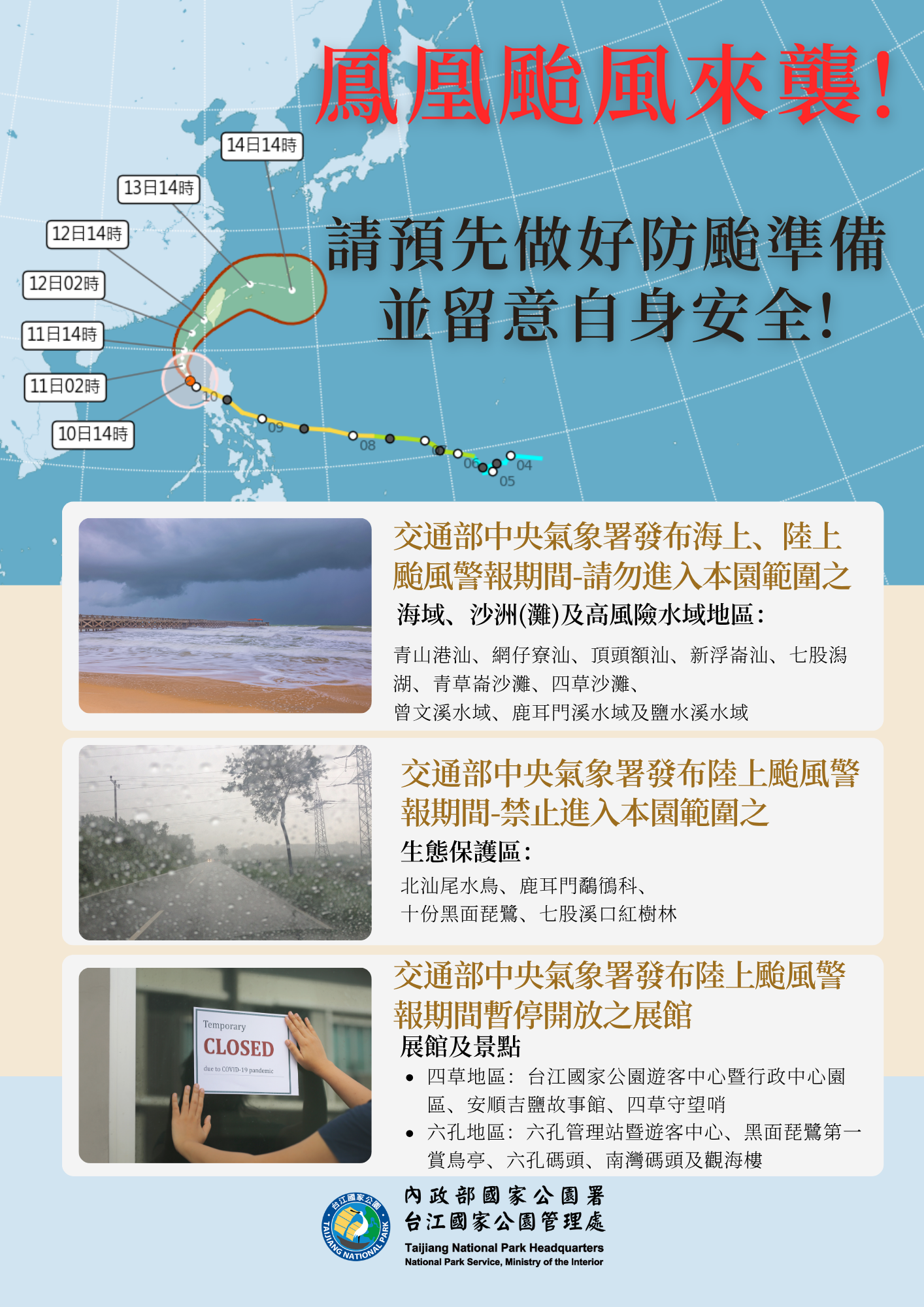 觀光旅遊鳳凰颱風來襲!請預先做好防颱準備,並留意自身安全!