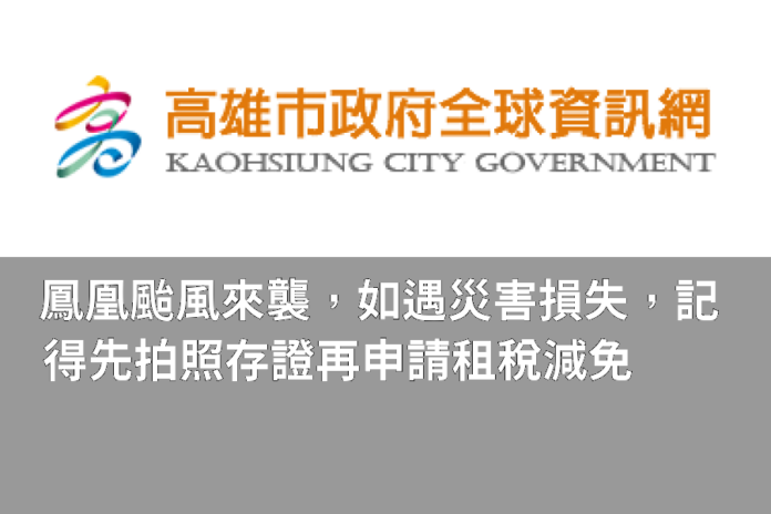 高雄市稅捐稽徵處籲請民眾注意颱風動向並做好防颱準備以維護自身安全,如受鳳凰颱風影響而有財產損失,請記得先拍照存證,檢具證明文件於災害發生後30日內申報(請)減免。