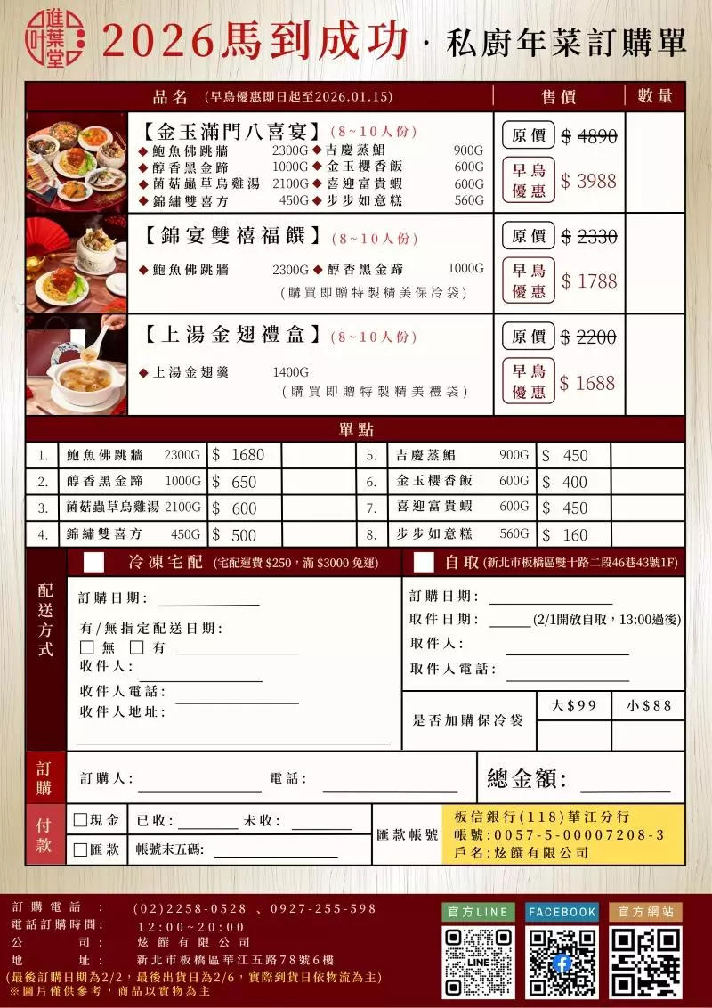 商情2026春節年菜首選預購開跑|進葉堂五星主廚經典手路菜全台宅配到府,在家輕鬆享幸福團圓