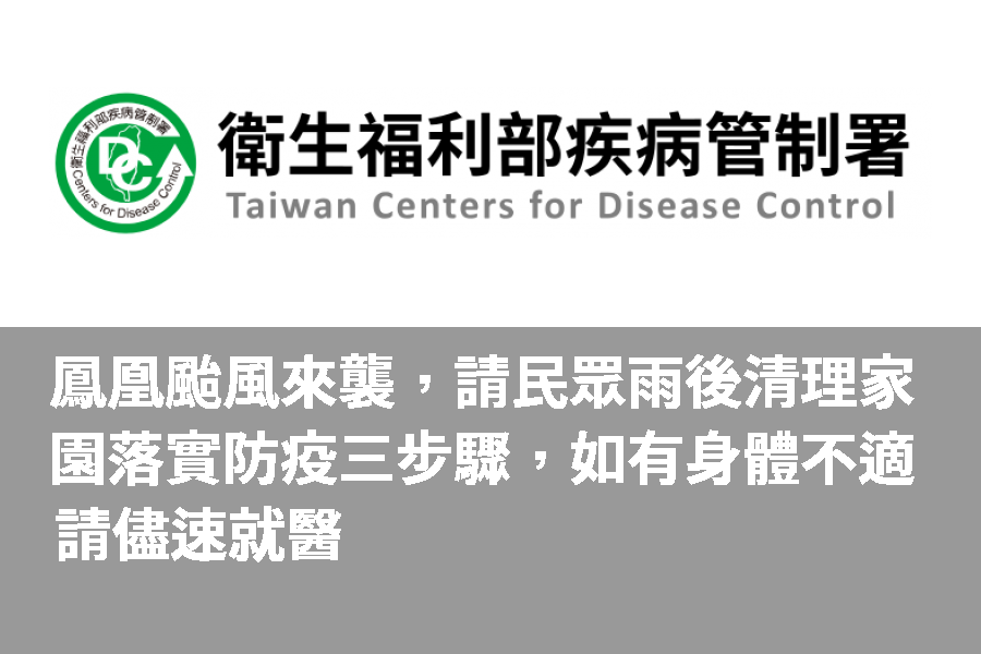 鳳凰颱風來襲,請民眾雨後清理家園落實防疫三步驟,如有身體不適請儘速就醫