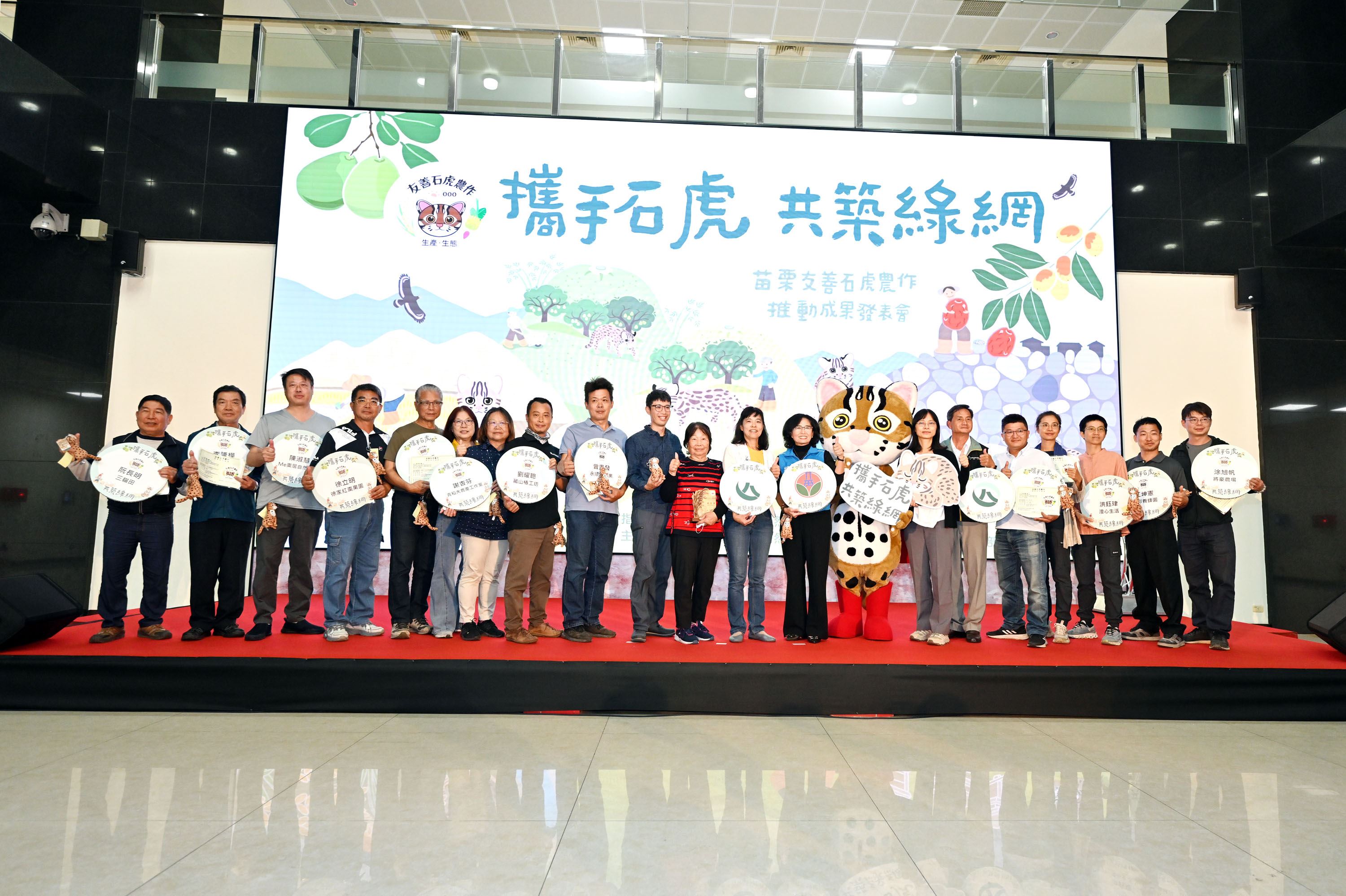 為推動生態保育與永續農業並行,農業部林業及自然保育署新竹分署、農業部生物多樣性研究所與苗栗縣政府今天邀集民間團體及在地農友共同展示友善石虎農作推動成果,會中並表揚16位長期投入的農友與包括苗栗區農業改良場等6個協力夥伴,展現農業生產與生態共榮的實踐成果。