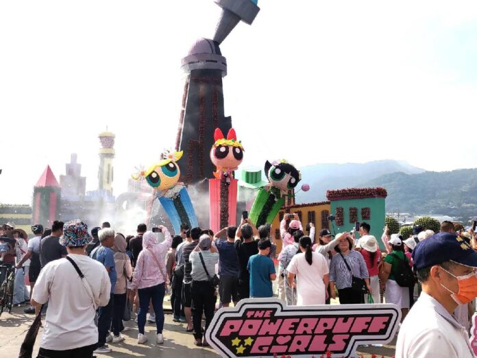 觀旅局長陳美秀表示,今年的主花毯為歷屆最大,高18米、直徑60米,其中,以魔人啾啾的基地為裝置的最高點,四周環繞經典小鎮村場景,像是盪鞦韆、甜甜圈店等人氣打卡點,並能看到多個呈現飛天小女警角色的藝術裝置,包含聰明樂觀的領導者花花(Blossom)、天真愛撒嬌的少女代表泡泡(Bubbles),以及活潑好動的堅強後盾毛毛(Buttercup)!也可能與尤教授、小鎮村市長、會說話的狗等經典角色,以及粗暴小子、阿米巴幫、壞死幫派、「他」等反派角色立牌「不期而遇」,處處驚喜。