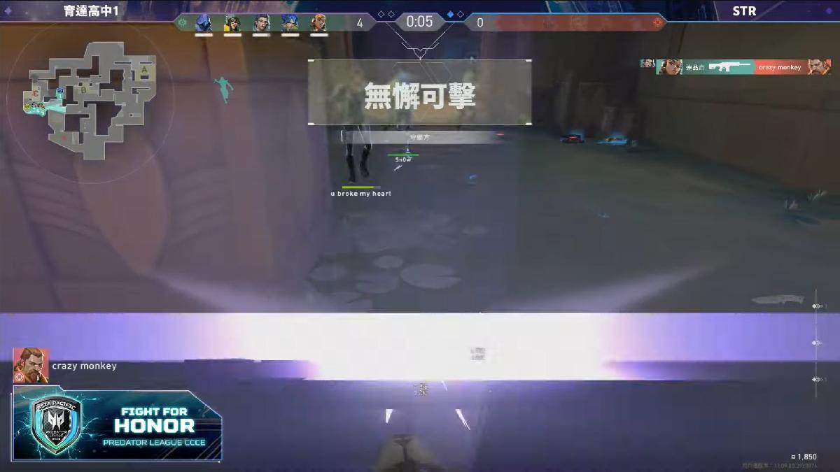 本次冠軍賽首戰地圖〈遺落境地〉,隊伍採用火男、婕提、蘇法、瑟符與歐門的平衡陣容,兼具突破、壓制與偵查能力,攻守轉換流暢。第二戰地圖〈蓮華古城〉,則以歐門、愷宙、菲德、妮虹與芮茲組成高機動組合,展現強烈進攻節奏與靈活應變力。兩場對戰皆精彩緊湊,最終以些微差距獲得第二名。比賽過程同步於 CCCE 官方臉書與 YouTube 平台進行直播。
