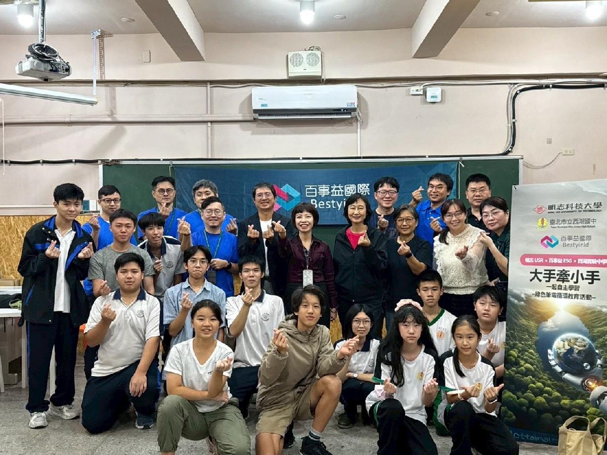 【臺北報導】產官學合作—西湖實驗國中大手牽小手計畫形成蝴蝶效應,擴散影響力,教育與USR與ESG完美結合。下午細雨綿綿,但西湖實驗國中辦理臺北市教育局「大手牽小手」計畫卻熱情滿滿,因為本校攜手明志科技大學USR計畫與百事益國際股份有限公司ESG企業社會責任專案,在西湖實中高毓璇校長領導的教務處的努力整合與籌辦下,完成了「ESG筆記型電腦環保再造共學成果發表會」。