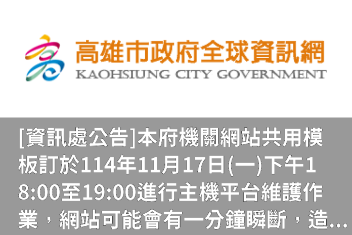 南部新聞高雄市 本府機關網站共用模板訂於114年11月17日(一)下午18:00至19:00進行主機平台維護作業,網站可能會有一分鐘瞬斷,造成不便之處,尚請見諒。 南部新聞高雄市 [資訊處公告] 本府機關網站共用模板訂於114年11月17日(一)下午18:00至19:00進行主機平台維護作業,網站可能會有一分鐘瞬斷,造成不便之處,尚請見諒。 編輯 劉 大龍 2025-11-13 [資訊處公告] 本府機關網站共用模板訂於114年11月17日(一)下午18:00至19:00進行主機平台維護作業,網站可能會有一分鐘瞬斷,造成不便之處,尚請見諒。 延伸閱讀 商情 桃園泰均–新北冷凍材料批發、台北冷氣材料批發、台中空調材料行 商情 彰化瀧禾景觀設計–中部園藝景觀、中部景觀石材、田尾植栽銷售 商情 文山禮儀–彰化禮儀公司、彰化生命禮儀、彰化喪禮規劃、喪葬諮詢 商情 大台灣安心旅遊車隊–新北包車旅遊、新北機場接送、新北商務包車