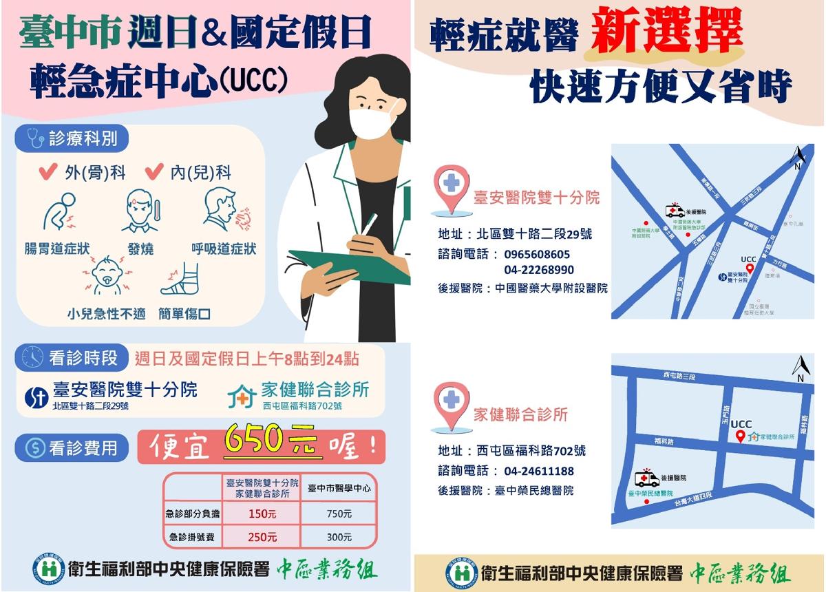 衛生福利臺中市「週日及國定假日輕急症中心」啟動 這兩處就醫省錢又快速
