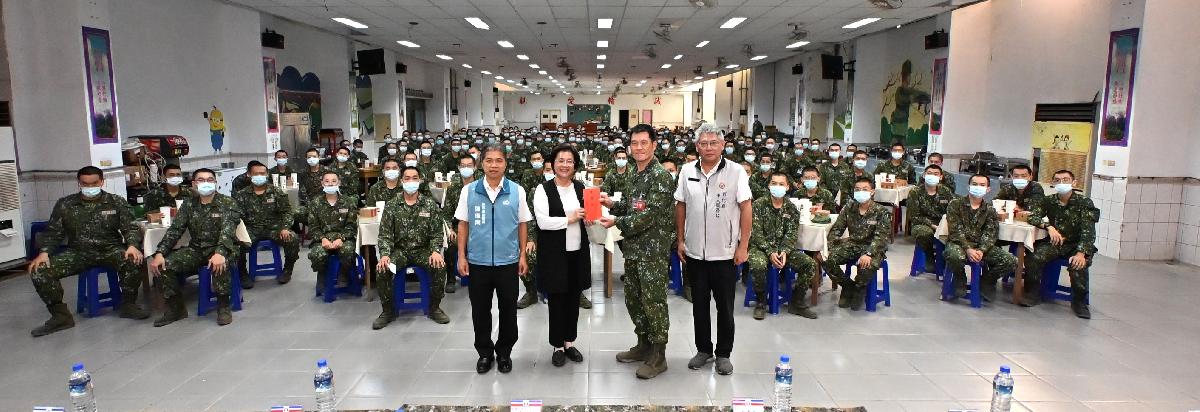 彰化縣長王惠美關心彰化子弟兵,今(14)日上午由縣府民政處副處長陳俊南等人陪同,前往台南大內營區探視陸軍第244梯次軍事訓練役的縣籍子弟兵,受到營區長官及受訓役男熱烈歡迎。王縣長現場致贈加菜金及每人一份速食餐點,並以縣長媽媽的口吻叮囑役男把握服役期間鍛鍊身心、立定志向,同時保重身體。期許快樂當兵,平安退伍。