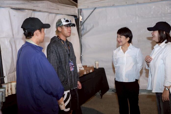 台中市長盧秀燕昨(14)晚親赴中央公園「玖壹壹南北貳路音樂節2025」彩排現場探班,親自送上炸雞與逢甲夜市美食,為玖壹壹加餐打氣,祝福演出圓滿成功。盧市長表示,台中正邁向「流行音樂之都」,中央公園已成為中部最具代表性的音樂舞台新地標。
