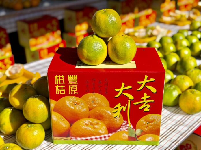 台中雨量充沛,農民栽培技術純熟,椪柑主要產區為東勢、豐原、北屯、石岡及新社。為提升果品品質並保障消費者食用安全,台中市政府農業局輔導豐原區農會,今(15)日於豐原區田心公園舉辦「柑柑好趣野餐」系列活動。現場除舉辦台中市優質椪柑評鑑競賽,也安排「柑橘大蔥野餐派對」、「椪柑創意著色畫競賽」、「親子柑橘料理DIY」、「大型氣墊城堡遊樂園」、「毛小孩放電園地」等活動,並設置具當地特色的裝置藝術供民眾拍照打卡,邀請大家認識豐原在地好產品。