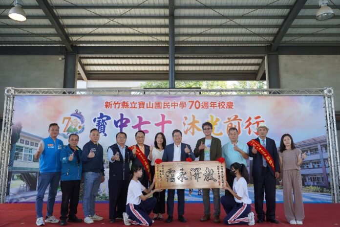 新竹縣立寶山國中、東安國小今(15)日分別舉辦「寶中七十 沐光前行」、「薪傳七十 卓起東安」校慶,縣長楊文科親蒞兩校致贈「教澤永霑」匾額,並頒發捐資興學傑出校友獎狀、感謝狀,誠摯的祝賀兩校70歲生日快樂!楊縣長表示,文化的根從語言開始,希望學校鼓勵學生參加客語認證、大家一起正視語言流失的危機,讓媽媽的話傳承下去。
