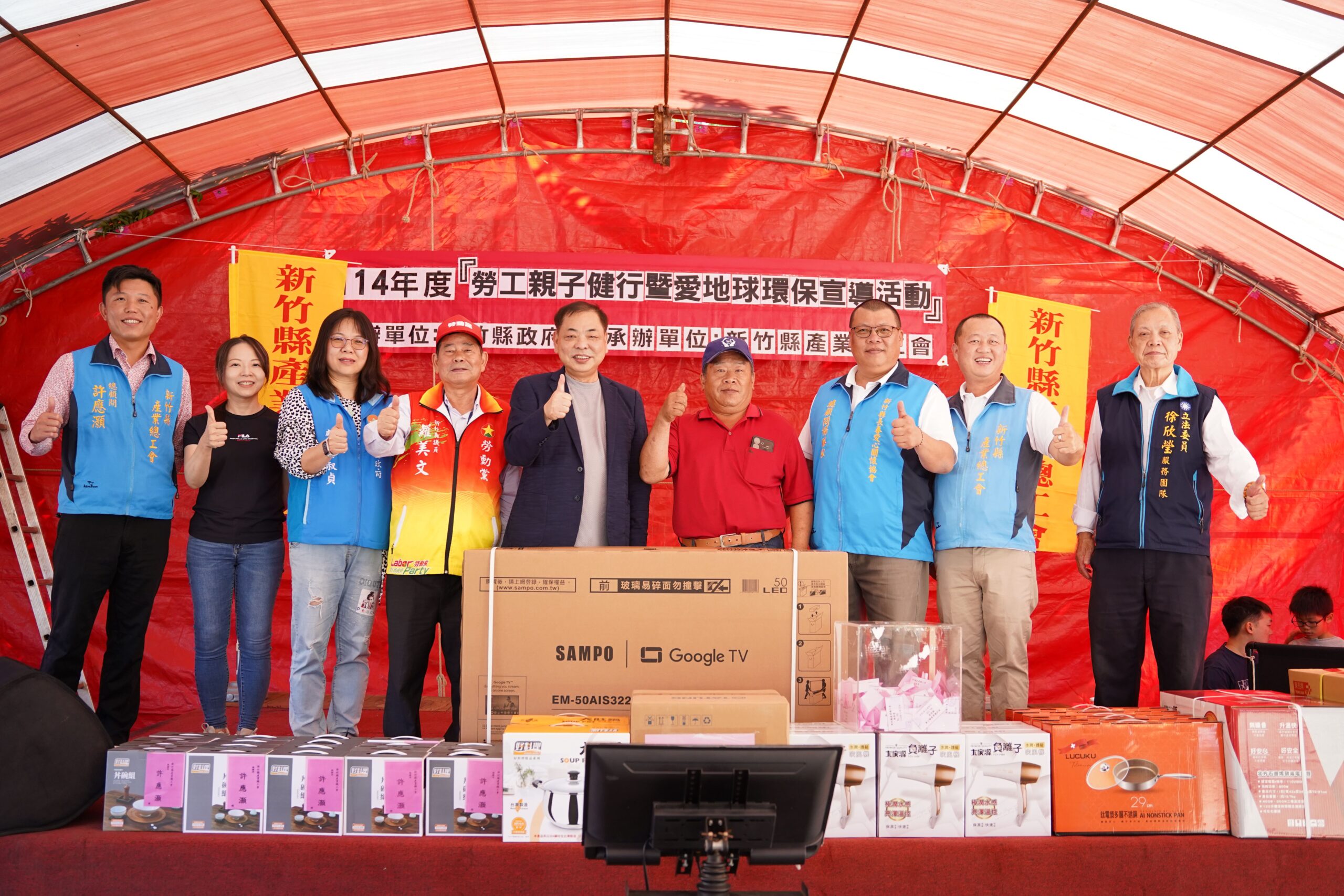 為鼓勵勞工家庭共同參與健康休閒活動,促進親子互動與社區連結,新竹縣產業總工會今(15)日於湖口三元宮舉辦「勞工親子健行暨環保愛地球宣導活動」,吸引縣內上百個勞工家庭、超過500名以上參與者熱情共襄盛舉。副縣長陳見賢蒞臨現場,與勞工朋友及眷屬們共同參與,現場氣氛溫馨熱鬧。